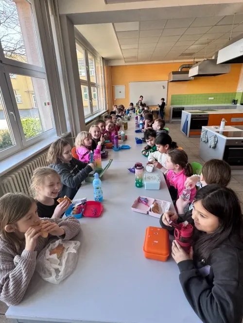Příjemné chvíle jsme strávili u společného stolování – děti si užily nejen dobré jídlo, ale i radost ze sdílení s kamarády.