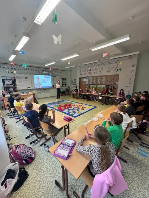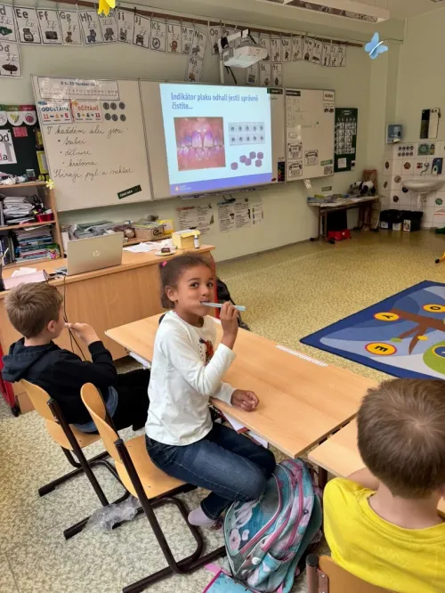 Přednáška o péči o zuby byla interaktivní a zaměřená na praktické dovednosti, jako je správné čištění zubů a pochopení role výživy v prevenci zubního kazu. Děti se dozvěděly, jak často a proč chodit k zubaři a dentální hygienistce.