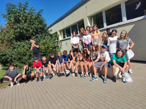 Ze středy na čtvrtek jsme se setkali na společné nocovačce, trochu jsme pracovali, ale největší úspěch měla samozřejmě schovka, kterou jsme vydrželi hrát neuvěřitelné tři hodiny. Ve čtvrtek ráno se k nám připojil zbytek třídy a foto je ze společné "provětrávací" vycházky.