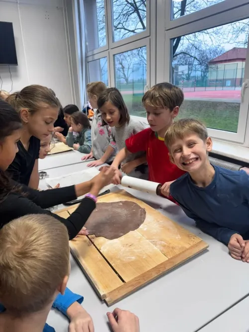 Vánoční čas jsme si zpříjemnili pečením voňavých crincles a tvořivou dílničkou. Společně se třídou 3. B jsme se pustili do tradičního pečení našich oblíbených sladkostí. Součástí celodenního programu bylo také vyrábění výrobků na vánoční jarmark. Třída byla plná smíchu, vůní a vánoční nálady. Společná práce nás velmi bavila. Vznikly krásné výrobky, chutné cukroví i milé vzpomínky.