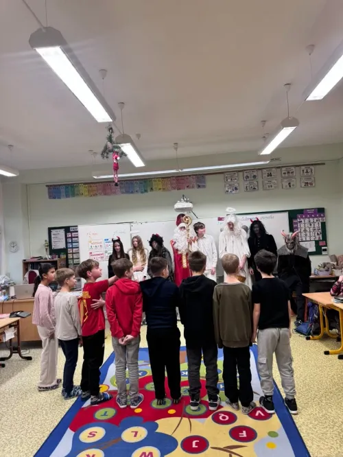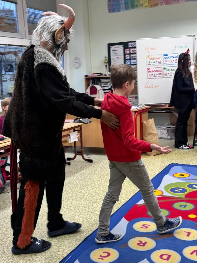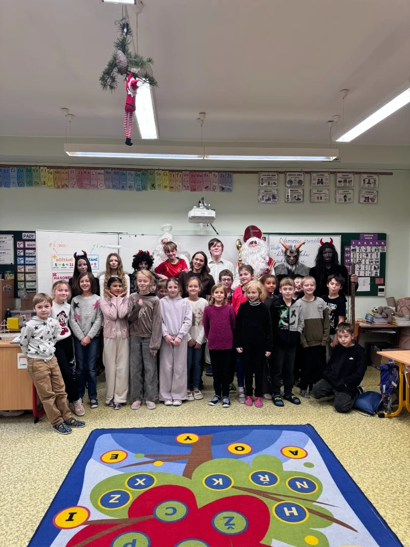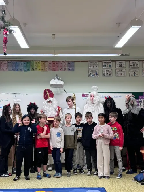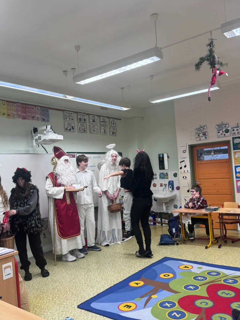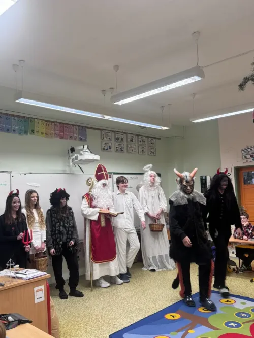 Do naší třídy zavítal Mikuláš tentokrát s anděly a pořádnou partou čertů. Čerti se ihned chopili své role a pustili se do neplechy ve třídě. My jsme si ale připravili básničky a písničky, kterými jsme potěšili vzácnou návštěvu. Mikuláš nás pochválil a odměnil nás malou nadílkou. Atmosféra byla radostná a pro nás to byl nezapomenutelný zážitek.