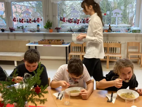Co jsme všechno zažili? Barevný týden, zpívání na náměstí a na jarmarku, nadělování dárečků a společný slavnostní oběd.