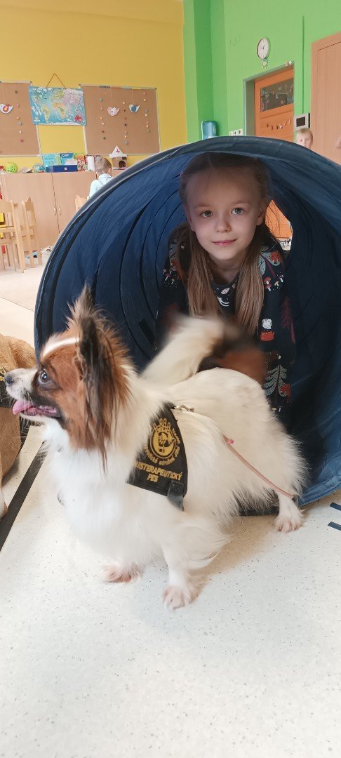 Canisterapie u dětí pomáhá snižovat stres, zlepšovat náladu, podporovat komunikaci a rozvíjet motoriku prostřednictvím léčebného kontaktu se psem.