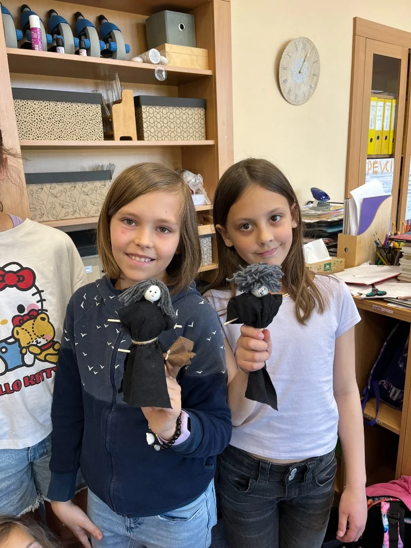 V rámci lidového zvyku pálení ohňů a víru v čarodějnice, jsme si každý vyrobili svou vlastní čarodějnici.