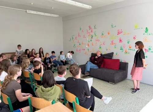 Chtěl bych, abychom my dospělí se naučili hodnotit a abyste vy se naučili hodnotit sami sebe. Také bych chtěl, aby před školou vznikl prostor, který by patřil škole.