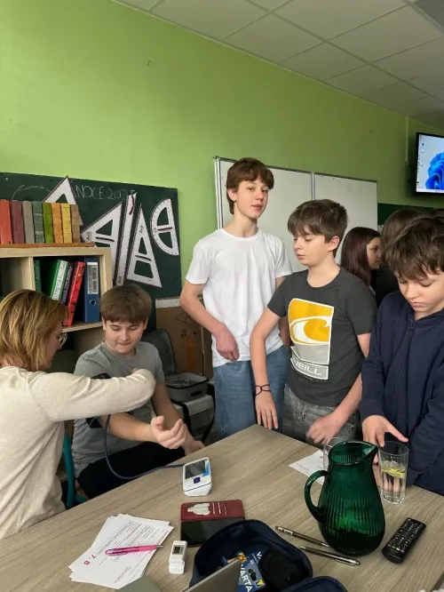 Druhá přednáška Život s důstojností byla realizována pracovnicemi Domácí péče Integrita z Uherského Hradiště. Žáci se dozvěděli, jak funguje domácí zdravotní péče, komu je určena a co práce zdravotníků obnáší. Prakticky si vyzkoušeli některé rehabilitační a kompenzační pomůcky, které pracovníci při péči využívají – například terapeutickou virtuální realitu, rehabilitační (robotickou) rukavici pro procvičování jemné motoriky nebo exoskelet pro nácvik chůze. Mohli si také změřit krevní tlak a saturaci kyslíku v krvi pomocí pulzního oxymetru.