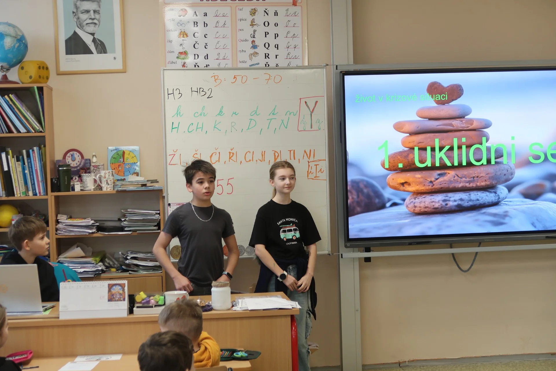 Šesťáci nám přišli povyprávět, co se letos dozvěděli na Dnech prevence od přednášejících. Byla to témata: První pomoc, Chování v kyberprostoru, Chování v krizových situacích.