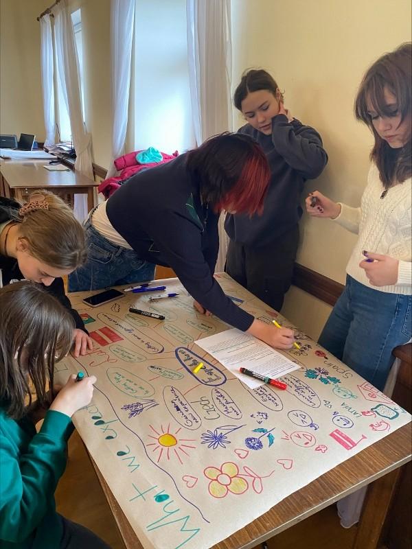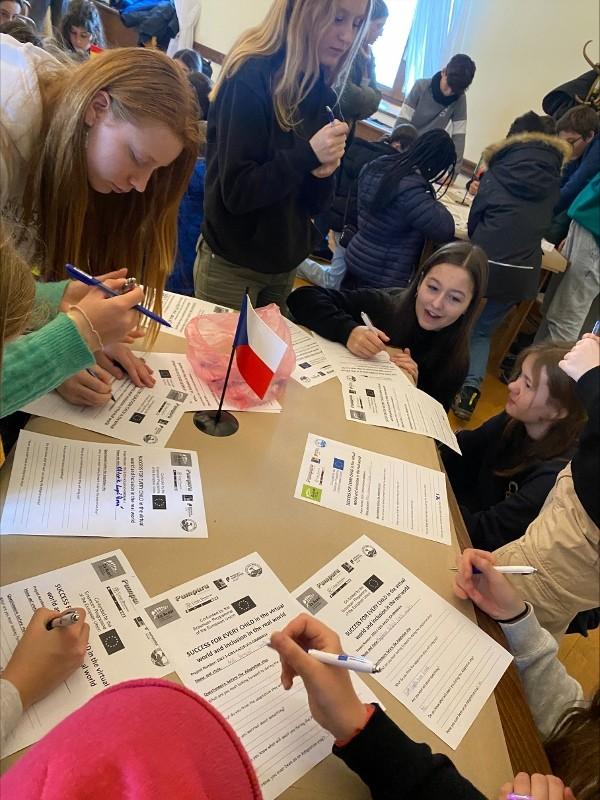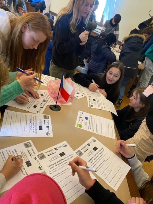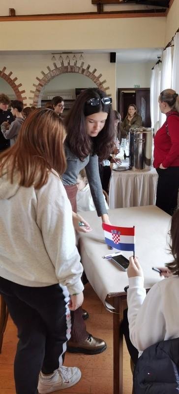V 9 hodin ráno jsme přijeli na hrad Buchlov, ubytovali jsme se v hotelu. A od 10 hodin pilně pracujeme. Začali jsme ve skupinách po státech, zpracováváme jednotlivá témata našeho projektu "Úspěch pro každého".