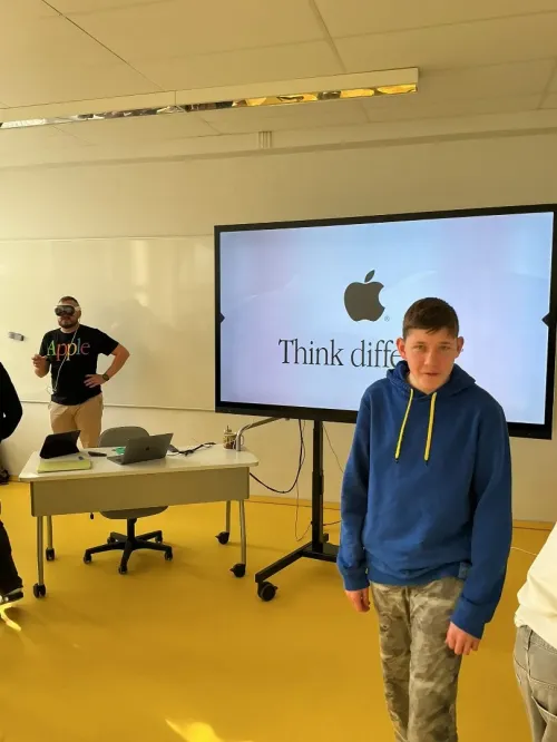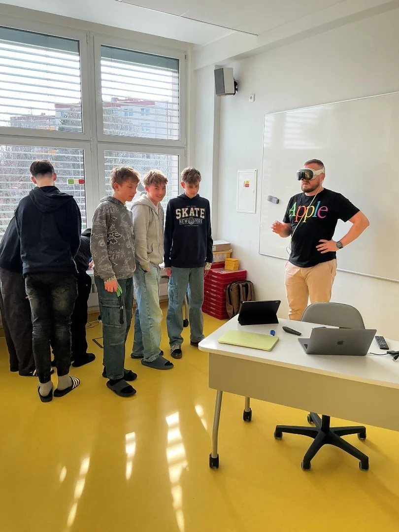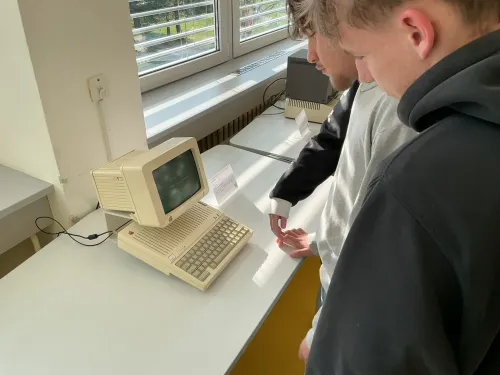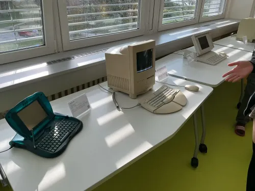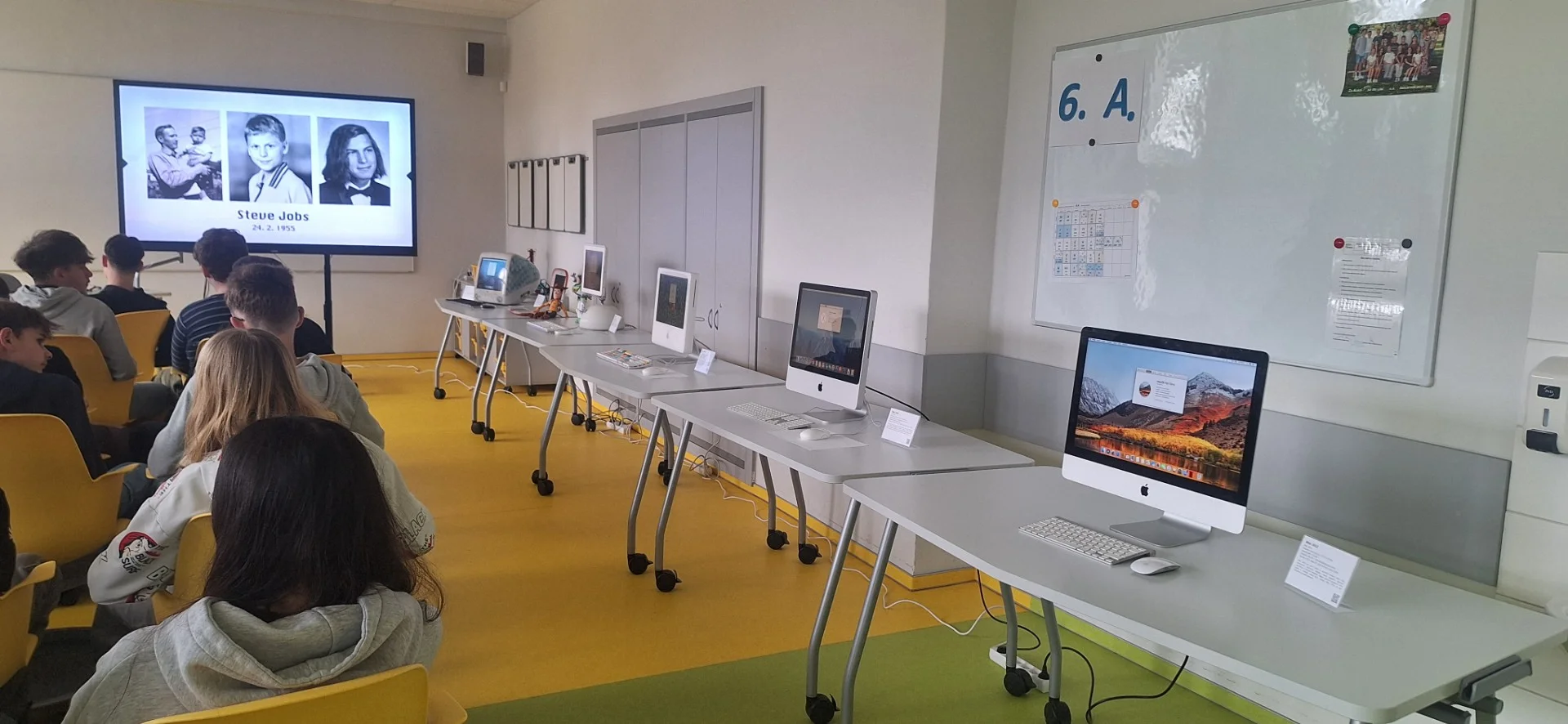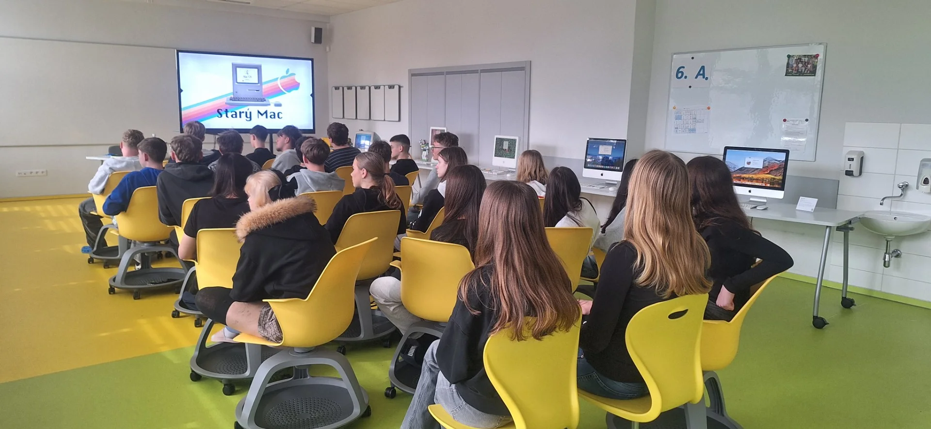 V pondělí 16. března se žáci osmých tříd ponořili do historie ikonických počítačů společnosti Apple. Díky sbírce Starý Mac se žáci seznámili s fascinujícím světem technologických inovací, které změnily způsob, jakým žijeme, pracujeme a komunikujeme. Tato jedinečná sbírka mapuje vývoj společnosti Apple od jejích skromných začátků až po ikonické designy a technologie. Na výstavě si žáci prohlédli legendární modely, jako je replika Apple I z roku 1976, počítač Apple II a průkopnický model Lisa 2 z roku 1983. K vidění byla také široká škála klasických počítačů Macintosh a kompletní řada modelů iMac, které definovaly moderní éru osobních počítačů. Celou přednášku a promítání moderoval renomovaný odborník Michael Vita. Studenti měli příležitost vyslechnout si poutavý příběh, který začal legendou o píšťalce z krabice cereálií, pokračoval přes Apple II, Lisa a Macintosh až po návrat Steva Jobse, přechod na Intel a čipy Apple Silicon. Celá přednáška skončila poselstvím „Think Different“, protože technologie dává smysl, když nás inspiruje k tomu, abychom viděli svět jinak. A jiný pohled na svět může vést k lepšímu životu, když člověk vybočí z každodenní šedi svého okolí.