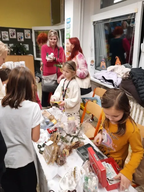 Už podruhé si děti vyzkoušely prodávání na jarmarku. Byly pyšné na své výrobky i na to, jak se role zhostily.