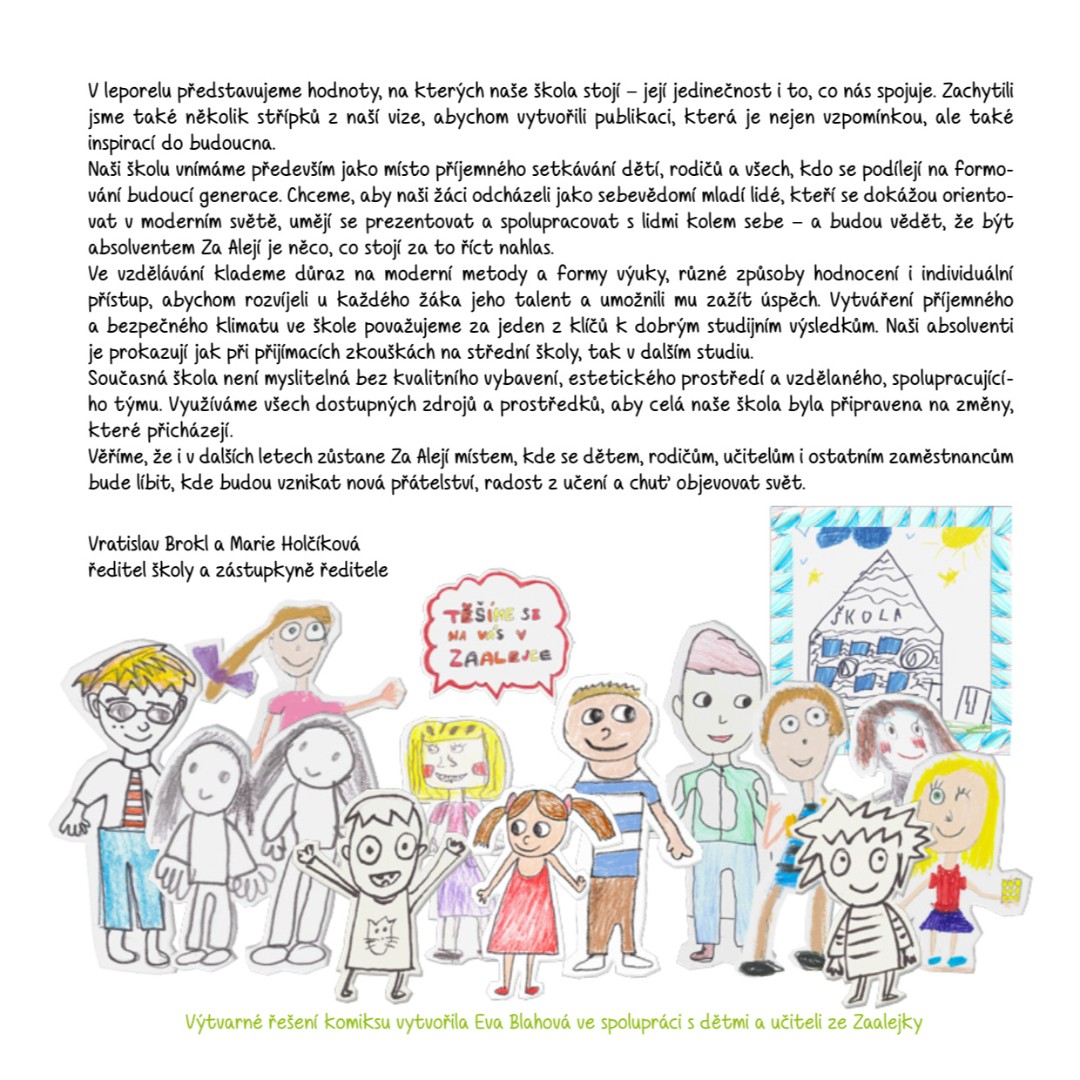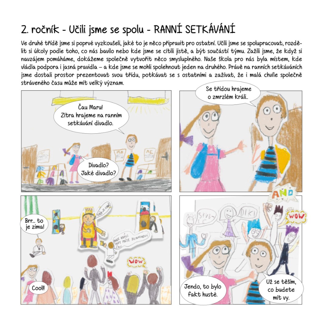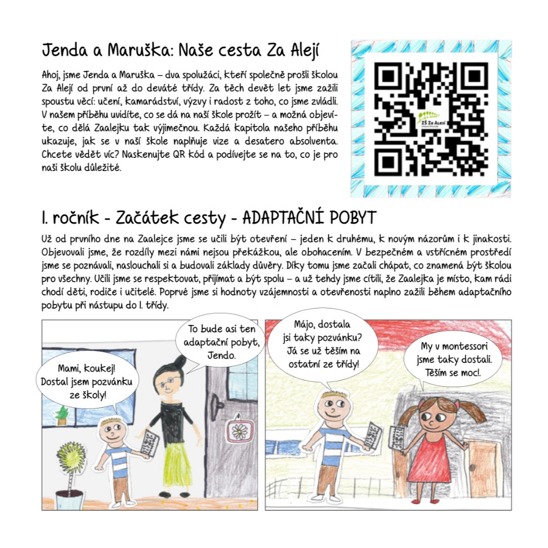 V komiksovém leporelu představujeme hodnoty, na kterých naše škola stojí – to, co ji činí jedinečnou, i to, co nás všechny spojuje. Zachytili jsme i několik střípků z naší vize, abychom vytvořili publikaci, která je nejen ohlédnutím za minulostí, ale i inspirací pro budoucnost.