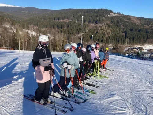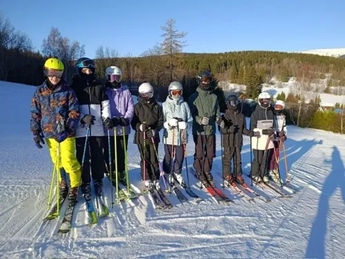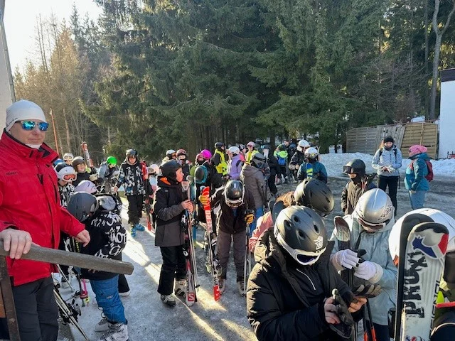 V neděli v 7:30 jsme se všichni sešli na hlavním hřišti, kde nás čekal autobus. Cesta trvala přibližně dvě hodiny a utekla celkem rychle. Po příjezdu jsme se rozdělili do pokojů a začali se vybalovat. Dále nás čekal oběd, který nebyl úplně nejlepší, ale dalo se to. A pak to přišlo… Začali jsme se chystat na lyže. Bundy, kalhoty, helma a šlo se.