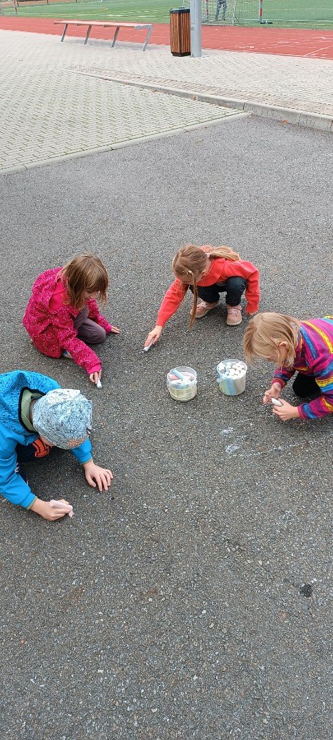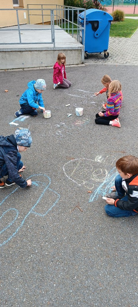 Malujeme křídami pohádkové postavy.
