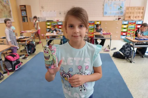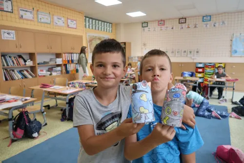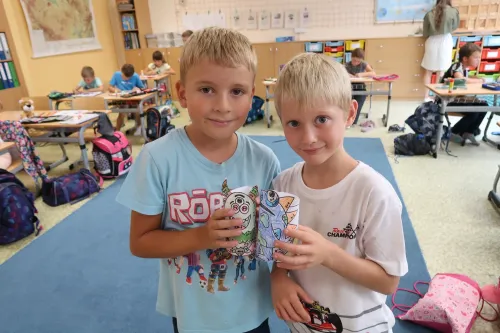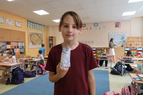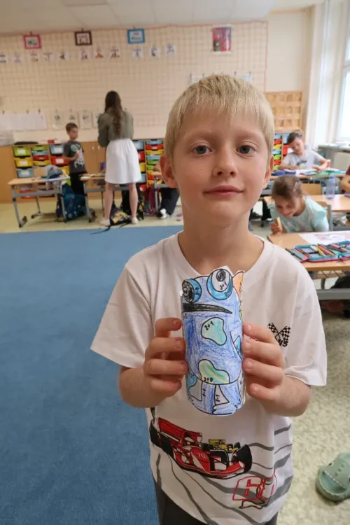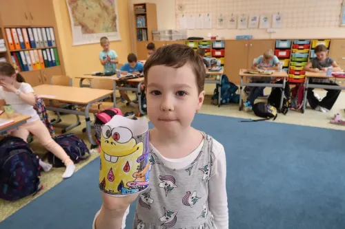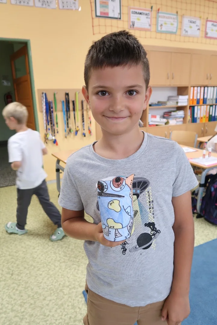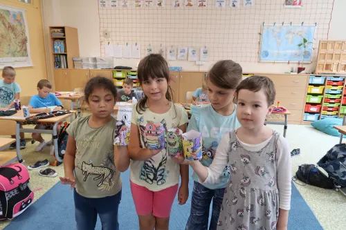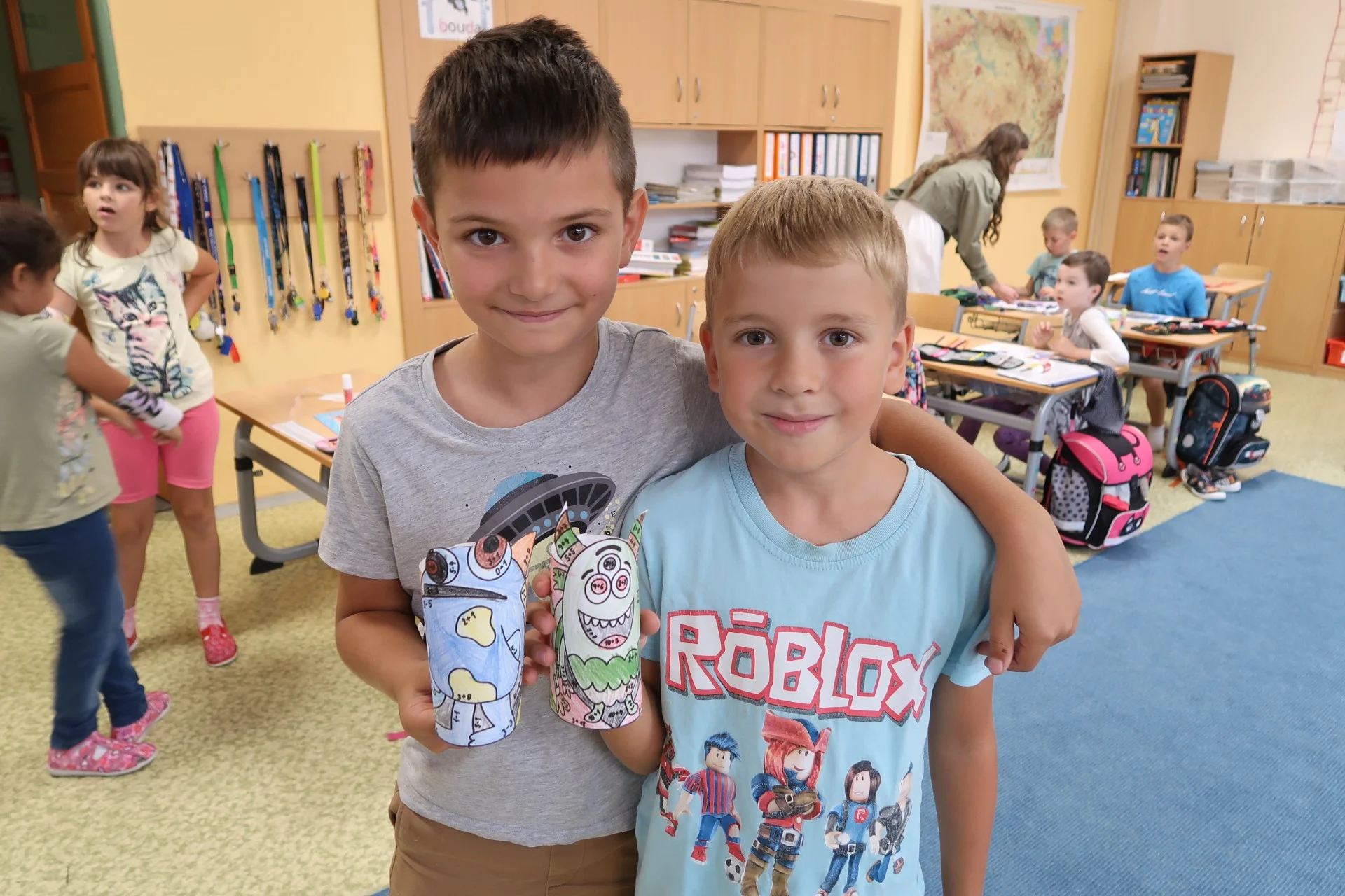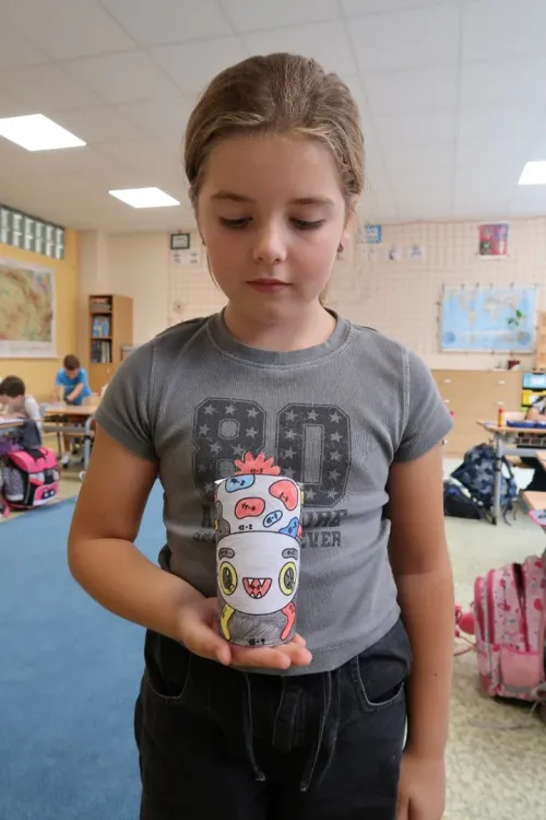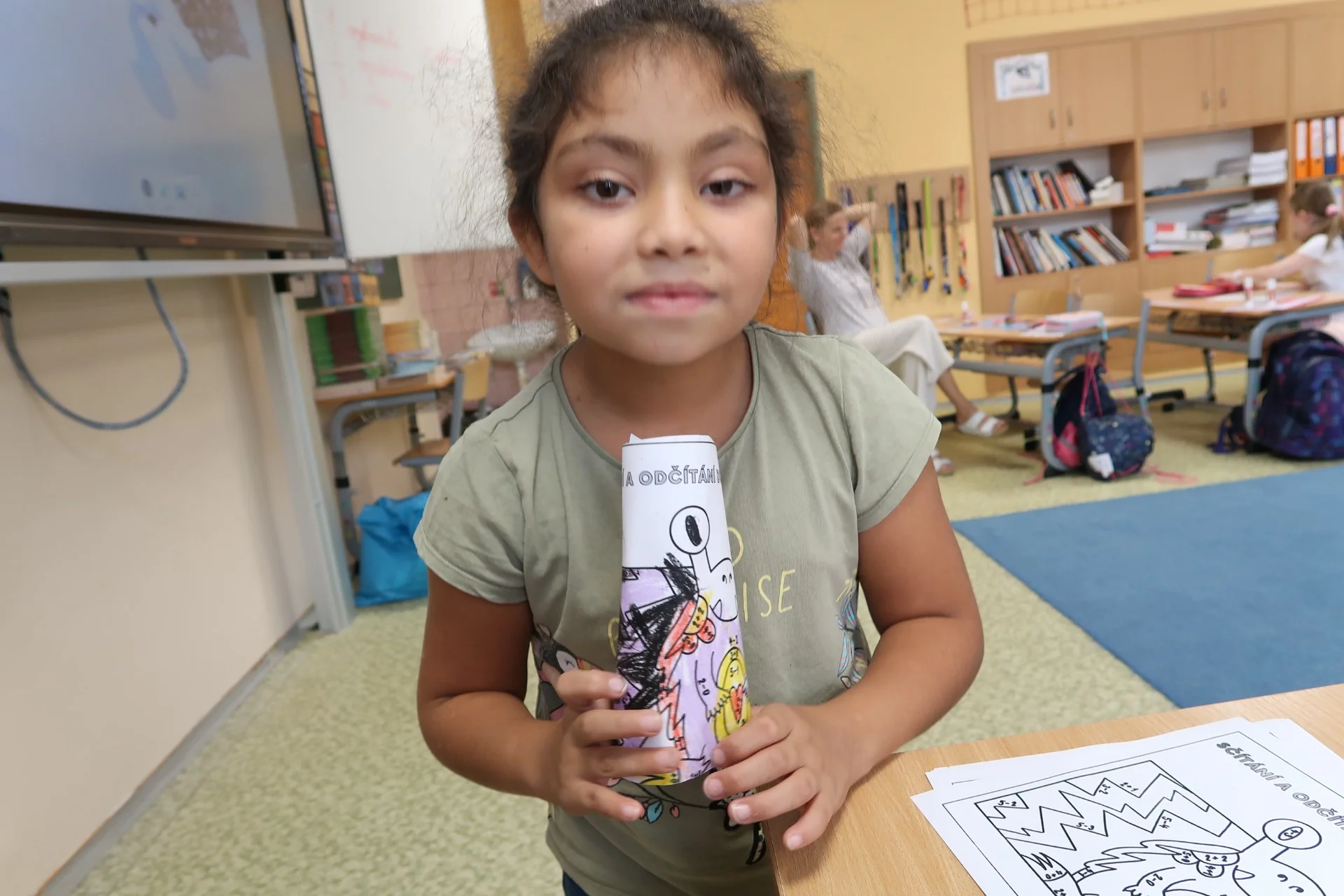 Nejdříve jsme počítali příklady, pak vybarvili, vystřihli a slepili příšerku. Moc nám to s nimi slušelo!!!