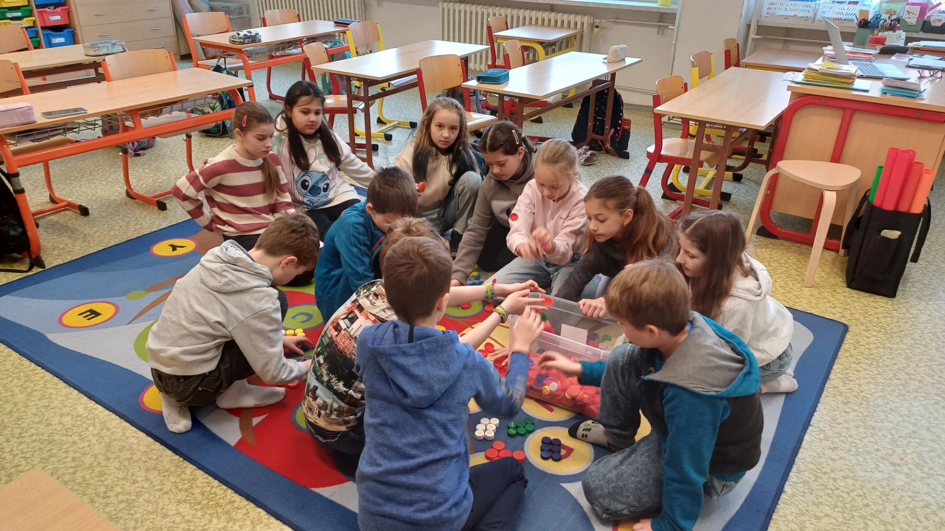 V hodinách MIU pracujeme různě, tvoříme skupiny z různých pomůcek, řešíme rámečky, povídáme si ...