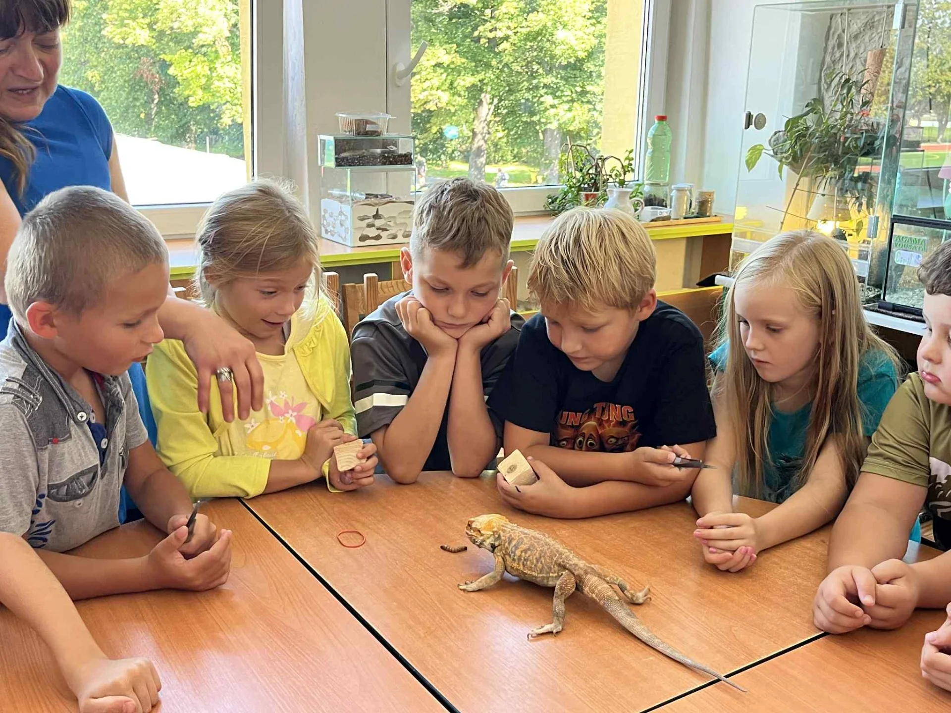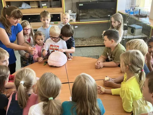 Děti ze školní družiny navštívily Přírodovědné centrum Trnka, kde se mohly podívat na ukázku kroužků, které Trnka nabízí - Pat a Mat, Entomologický kroužek, Hokus pokus, Zvířátko.