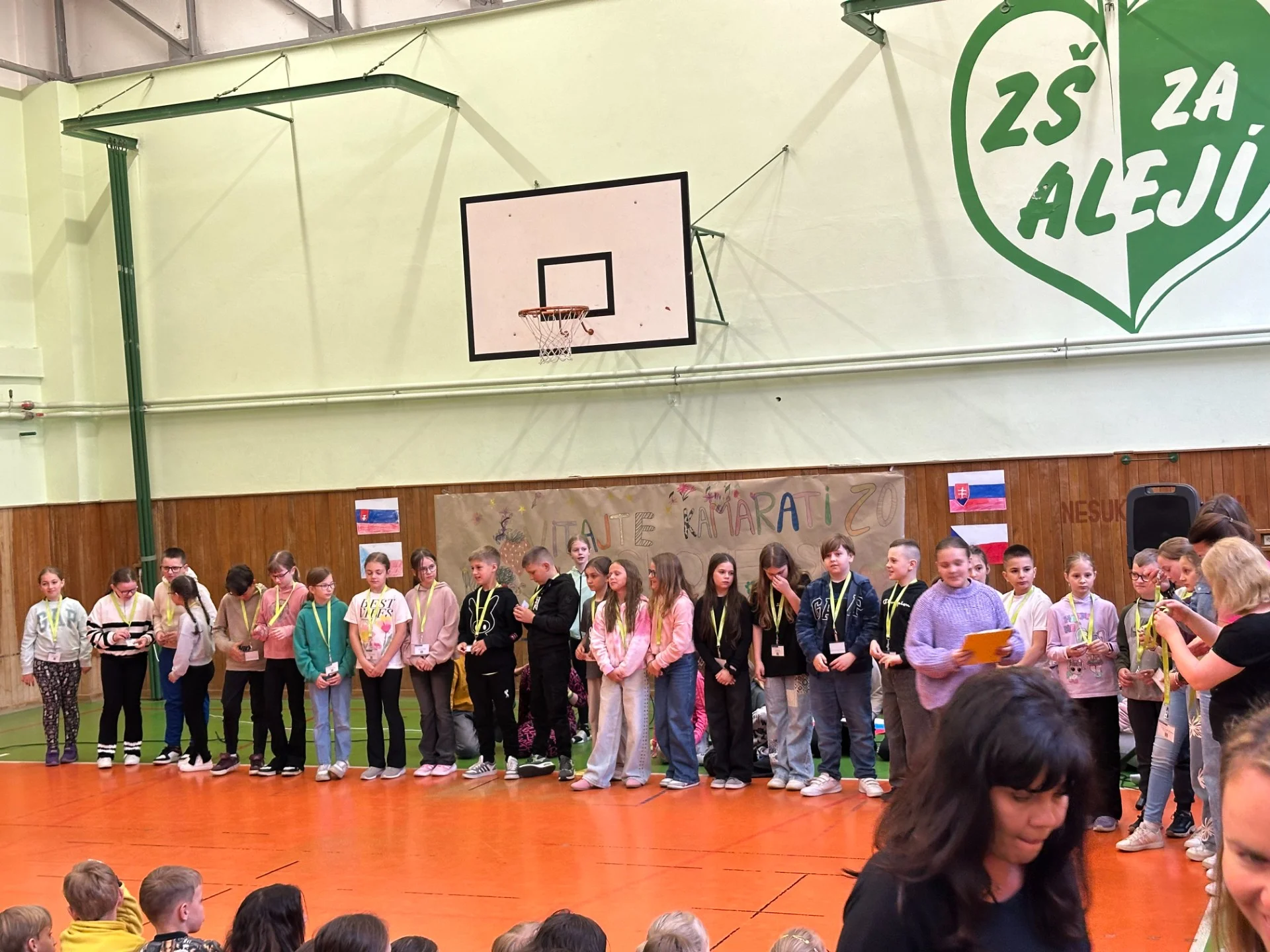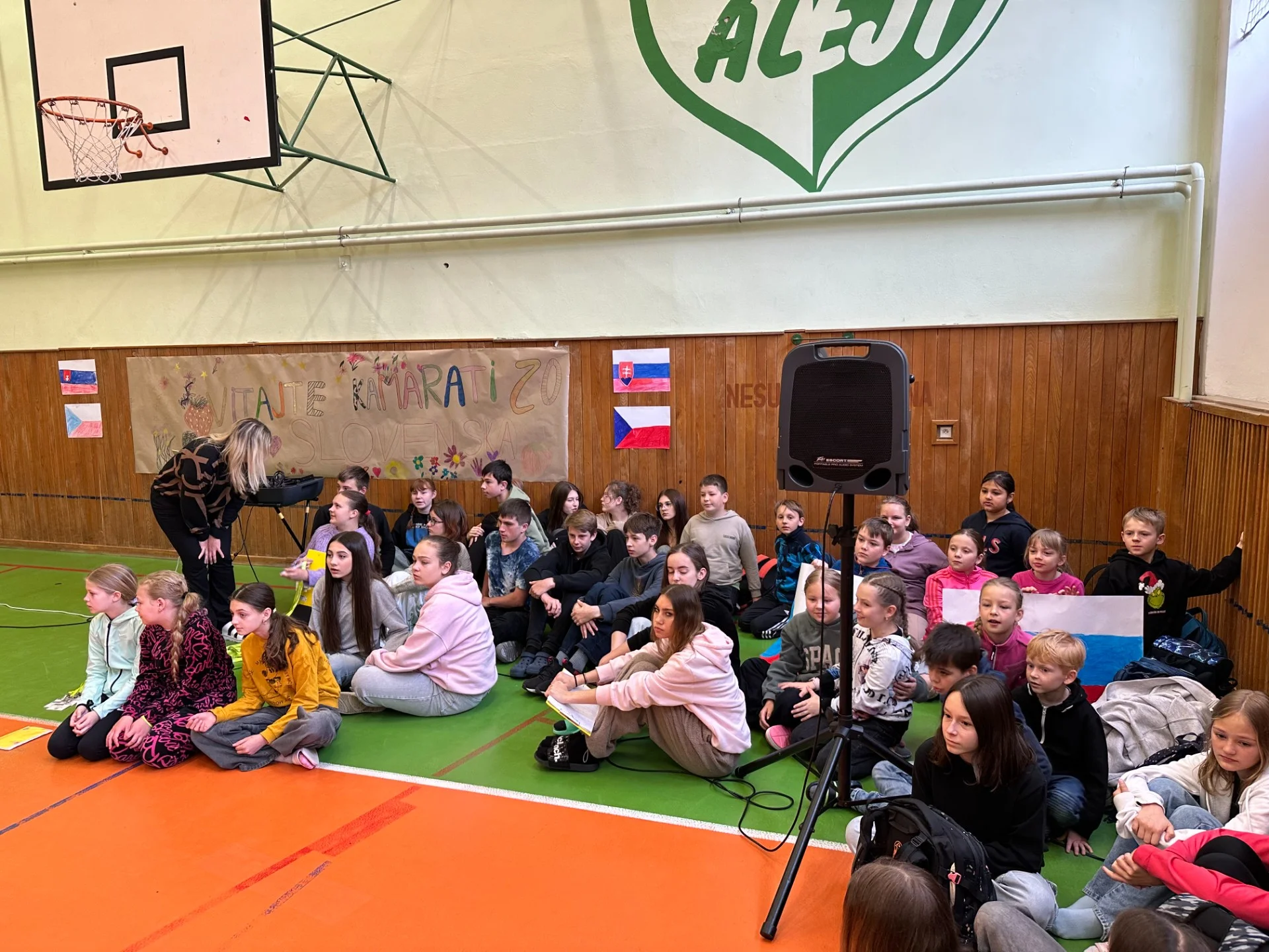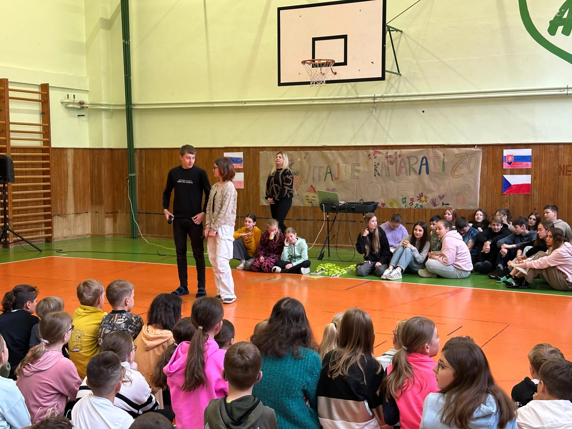Dne 19. května přivítala naše škola vzácnou návštěvu – 24 žáků a 3 učitelky ze ZŠ Stará Ľubovňa na Slovensku. Po dobu projektového týdne se o hosty starali naši žáci, kteří jim byli průvodci během programu a postarali se o příjemné přijetí. Žákovský parlament připravil slavnostní ranní setkání na počest slovenských přátel, během kterého scénkou připomněl rozdělení Československa, zazněla slovenská slovíčka, tradice i zvyky a vyzdvihlo se přátelství Čechů