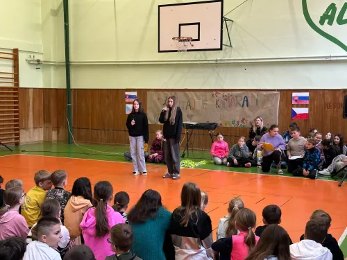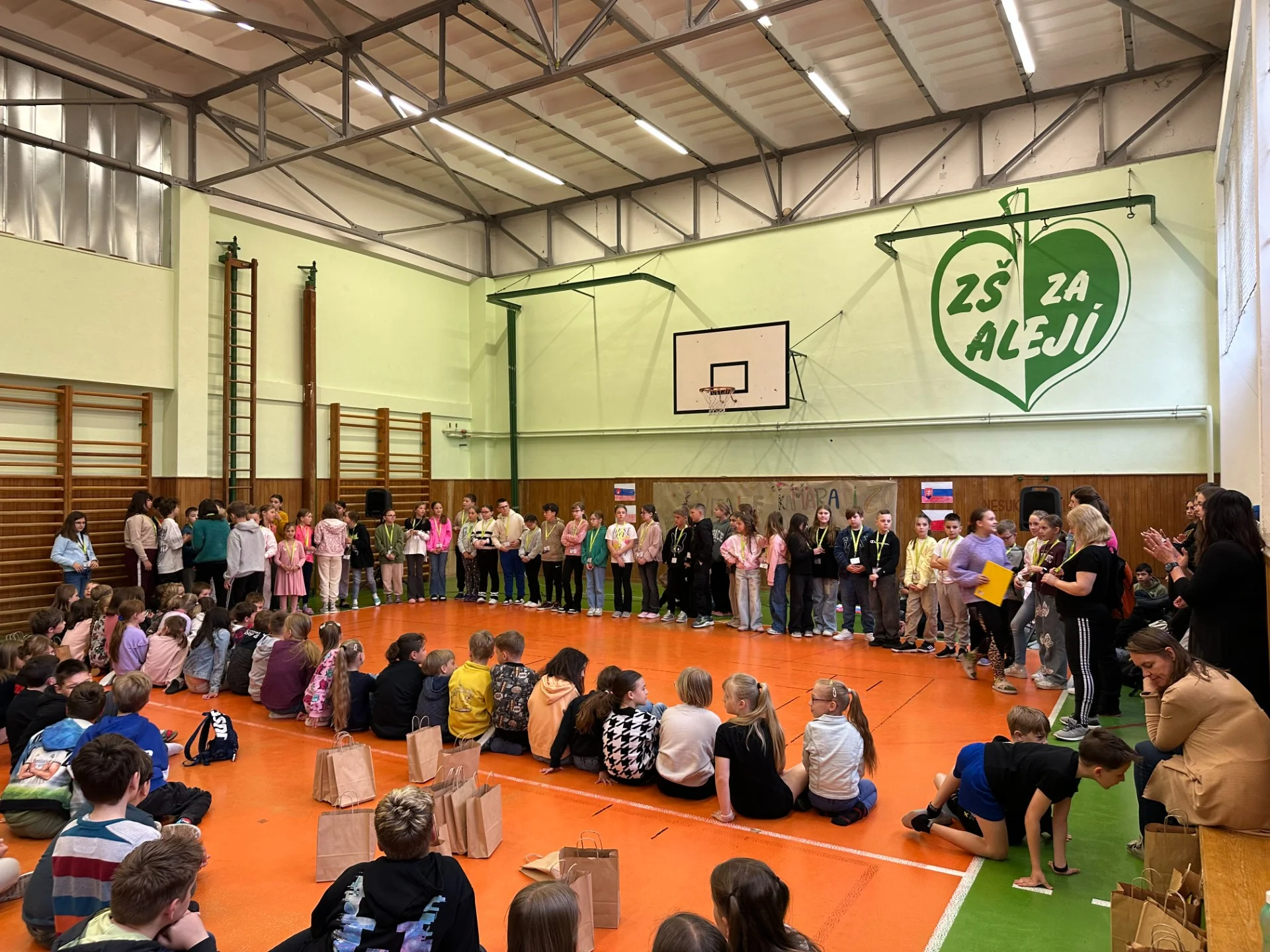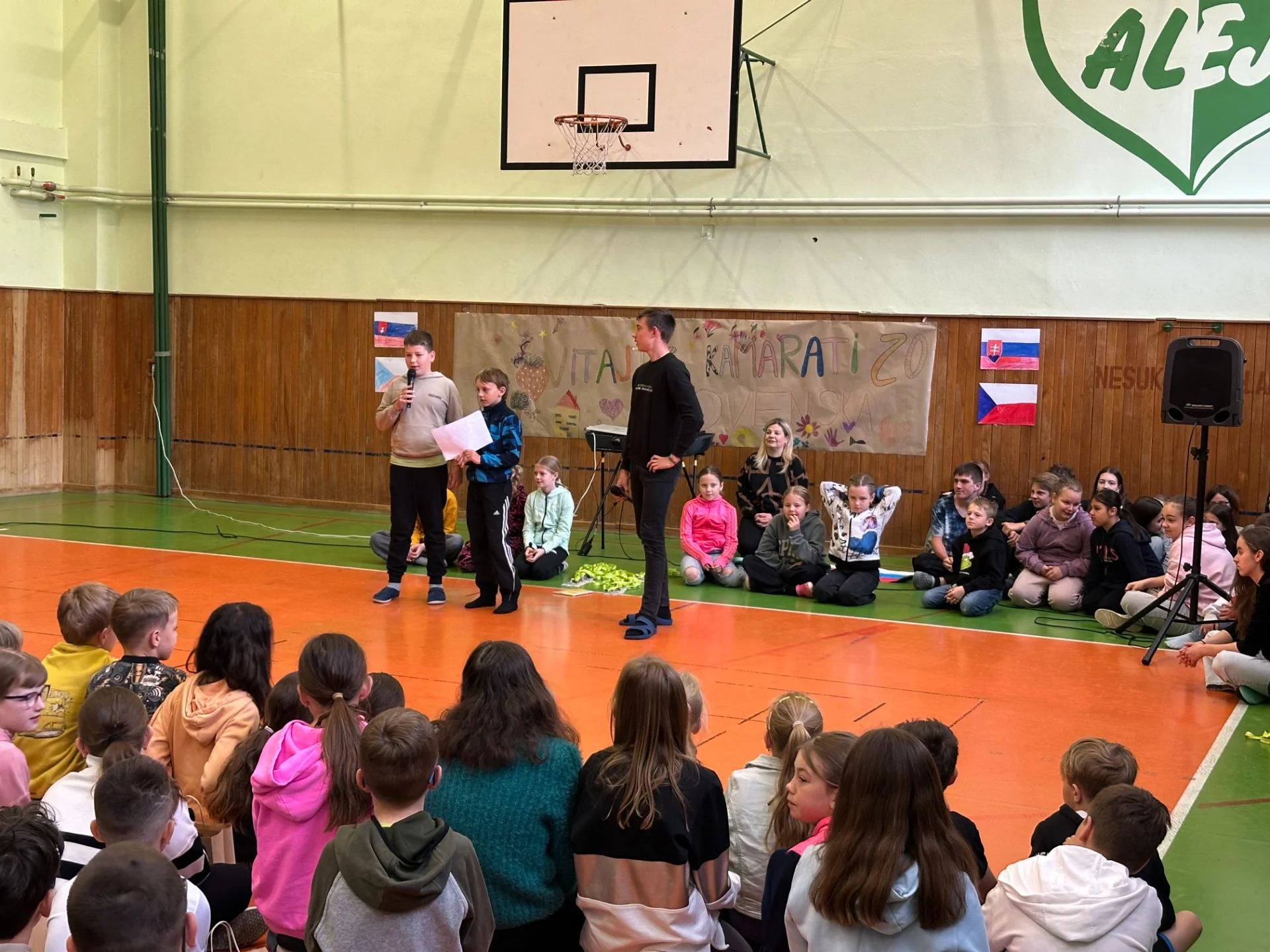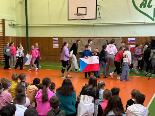 Dne 19. května přivítala naše škola vzácnou návštěvu – 24 žáků a 3 učitelky ze ZŠ Stará Ľubovňa na Slovensku. Po dobu projektového týdne se o hosty starali naši žáci, kteří jim byli průvodci během programu a postarali se o příjemné přijetí. Žákovský parlament připravil slavnostní ranní setkání na počest slovenských přátel, během kterého scénkou připomněl rozdělení Československa, zazněla slovenská slovíčka, tradice i zvyky a vyzdvihlo se přátelství Čechů
