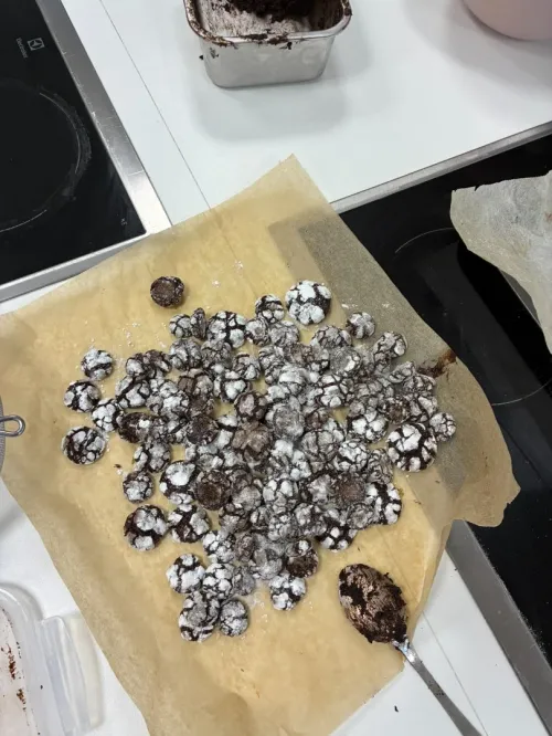 Naplno se připravujeme na tradiční Vánoční Jarmark. Perníčky jsme pekli minulý rok, tak jsme se letos rozhodli pro změnu a napekli jsme čokoládové crinkles. Snad budou chutnat!
