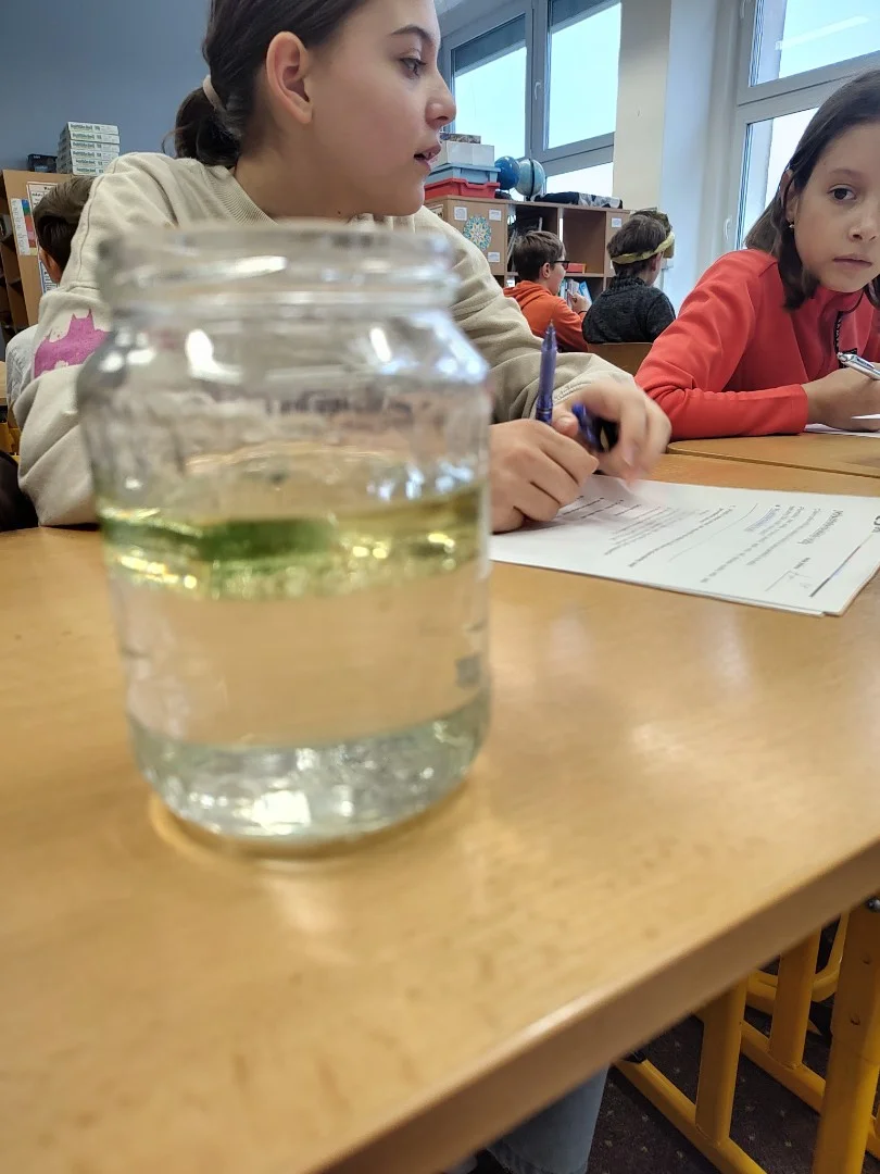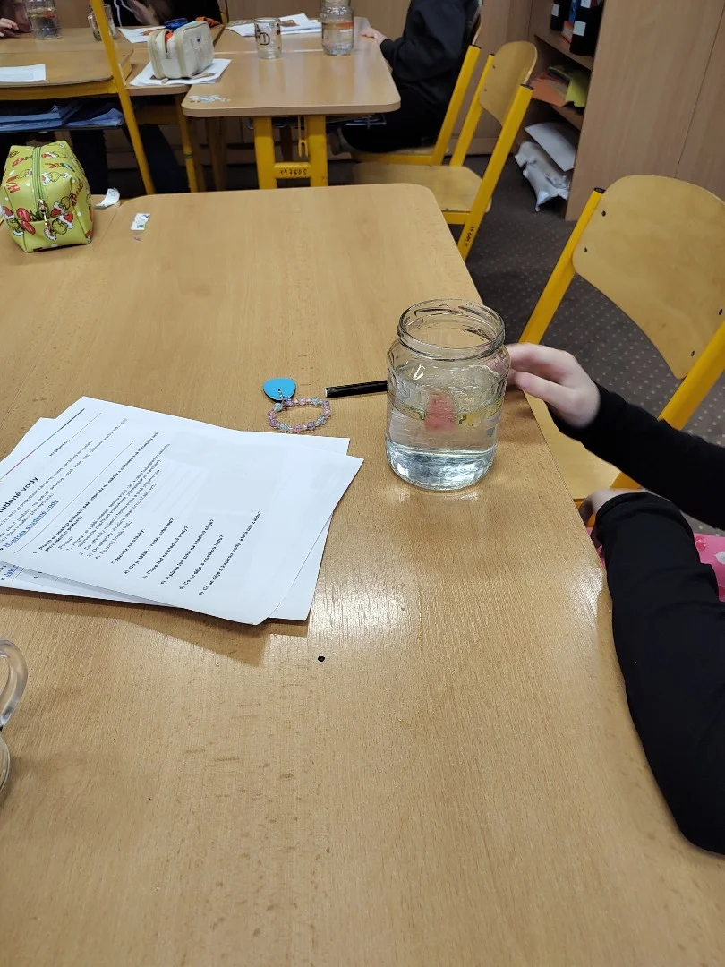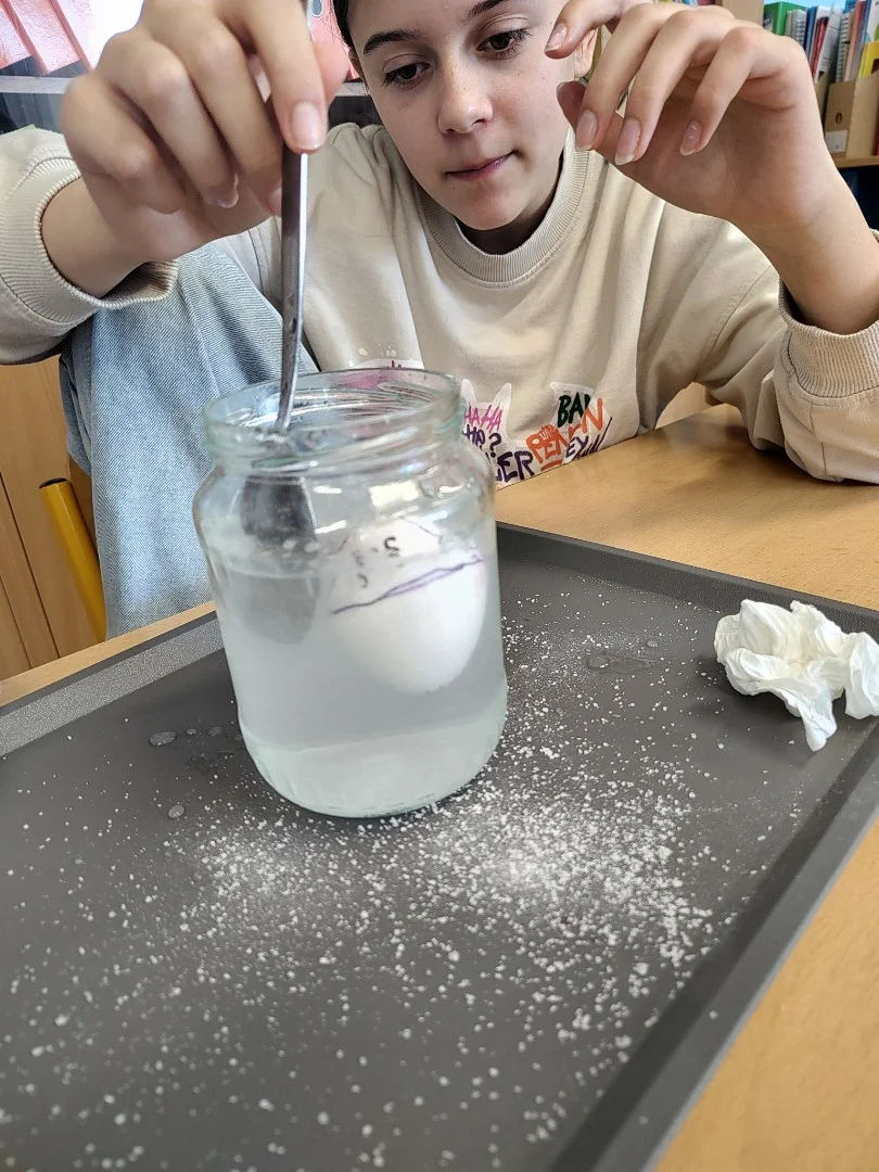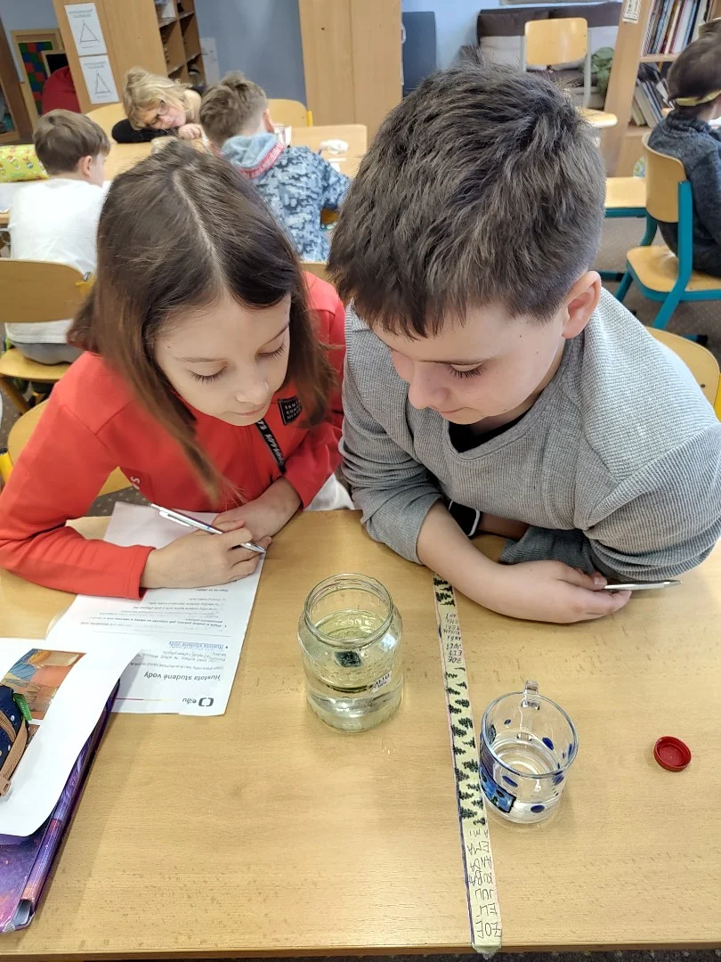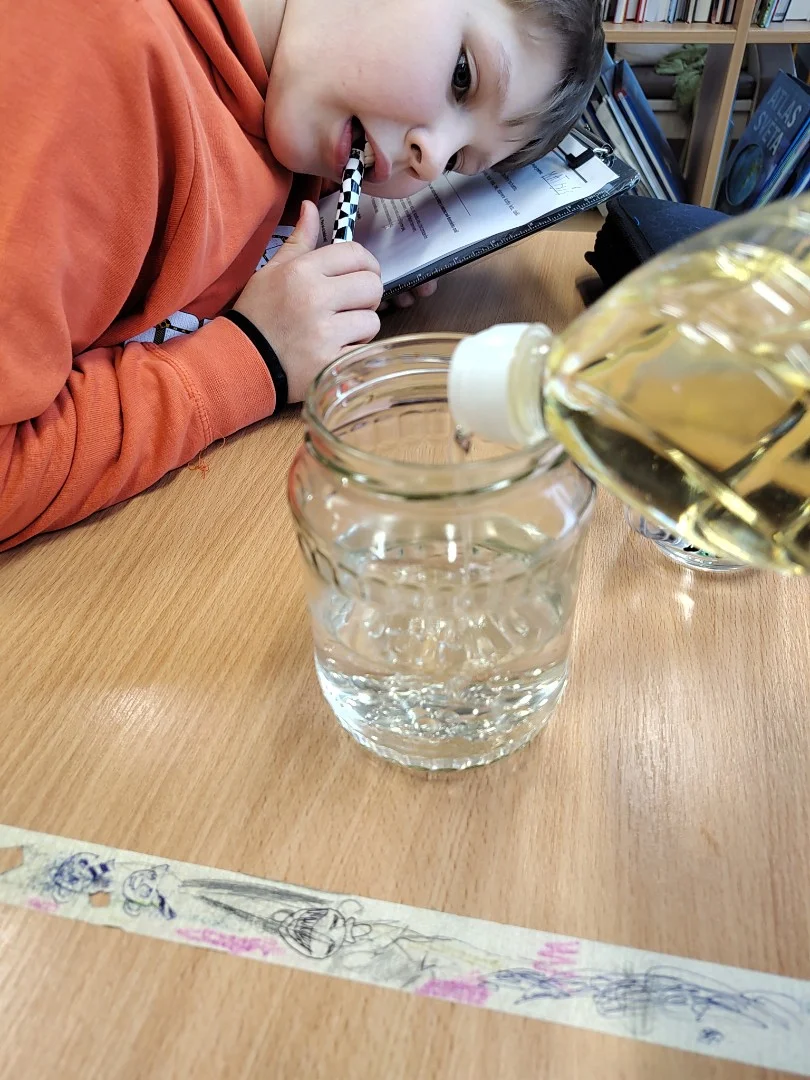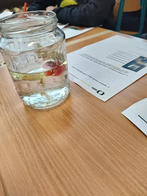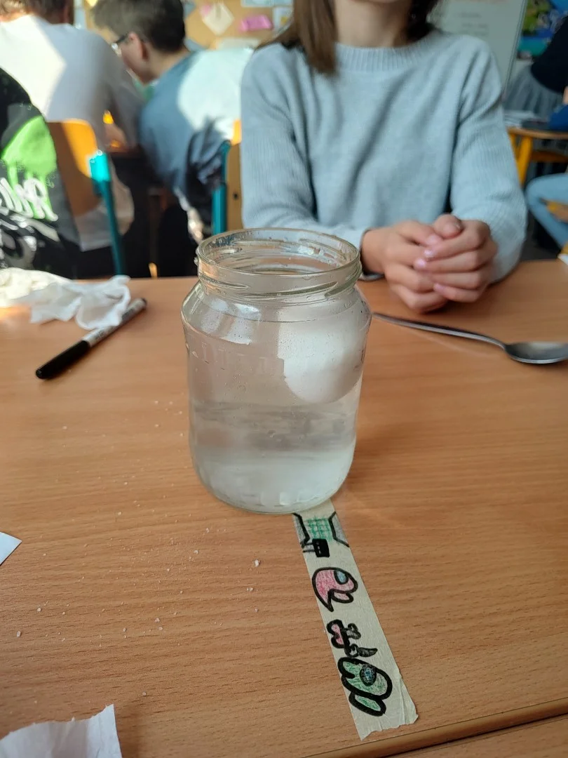Minulý týden jsme se ve třídě ME zabývali hustotou vody. Pozorovali jsme led, olej a jiné látky, studenou a teplou vodu. Také jsme si ověřili že sůl mění hustotu vody a nadnáší věci, třeba vajíčko. Kromě pokusu jsme se naučili zapsat postup, vytvořit nějakou domněnku, ověřit ji, zapsat výsledek pokusu, odpovědět na otázky a vyhodnotit pokus.