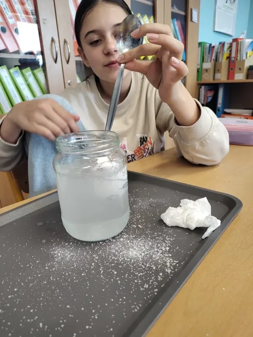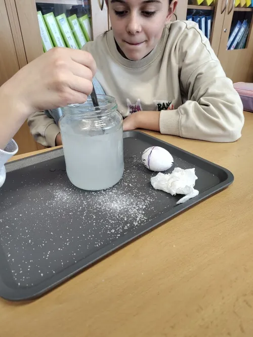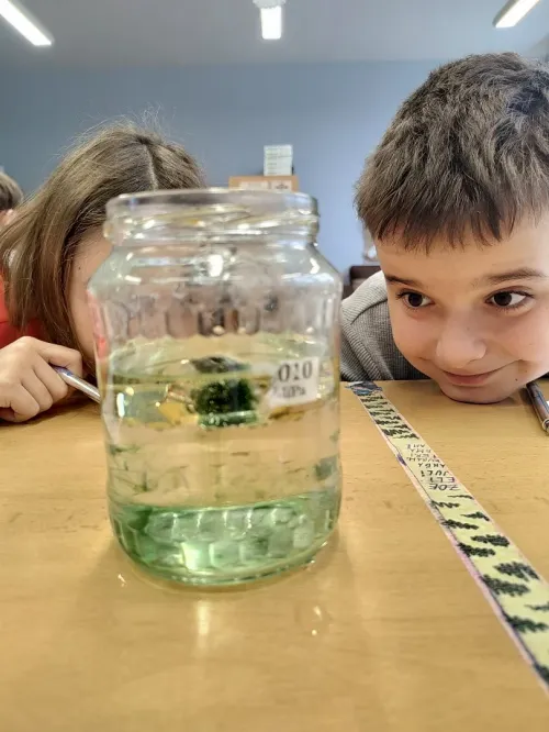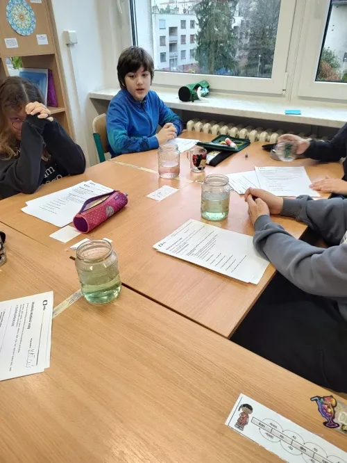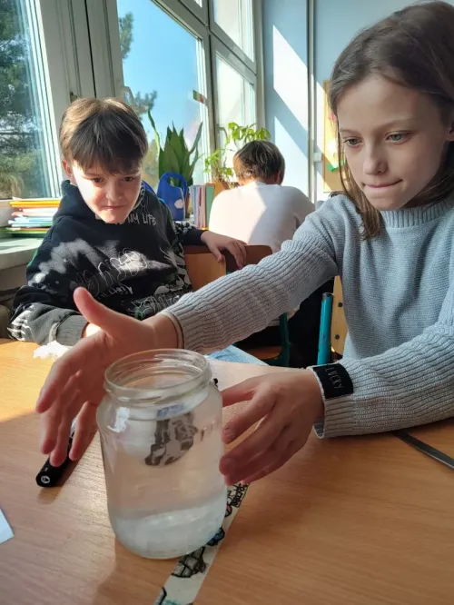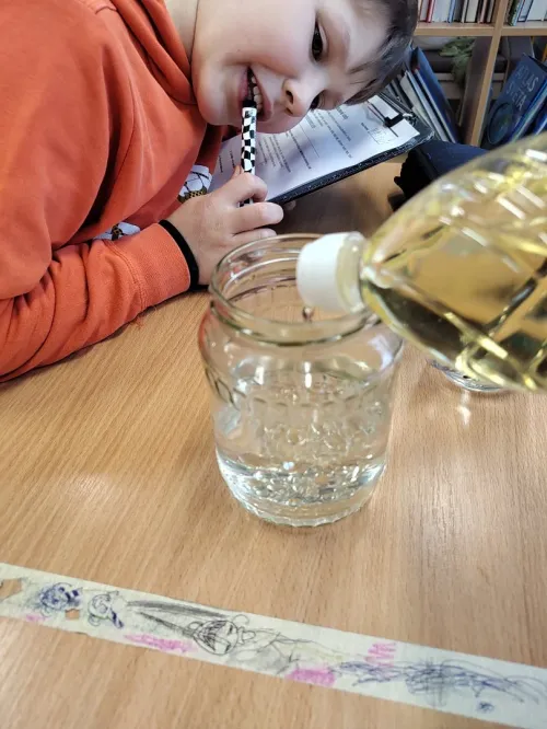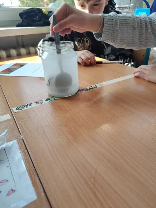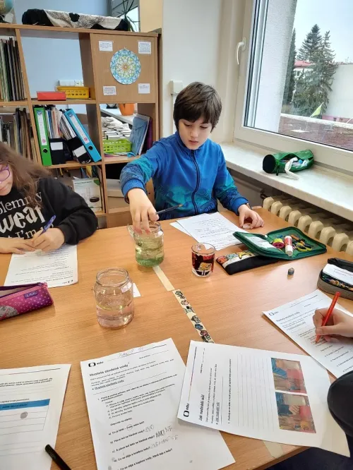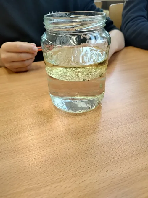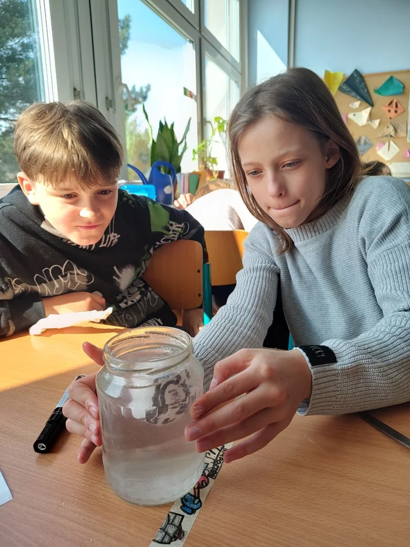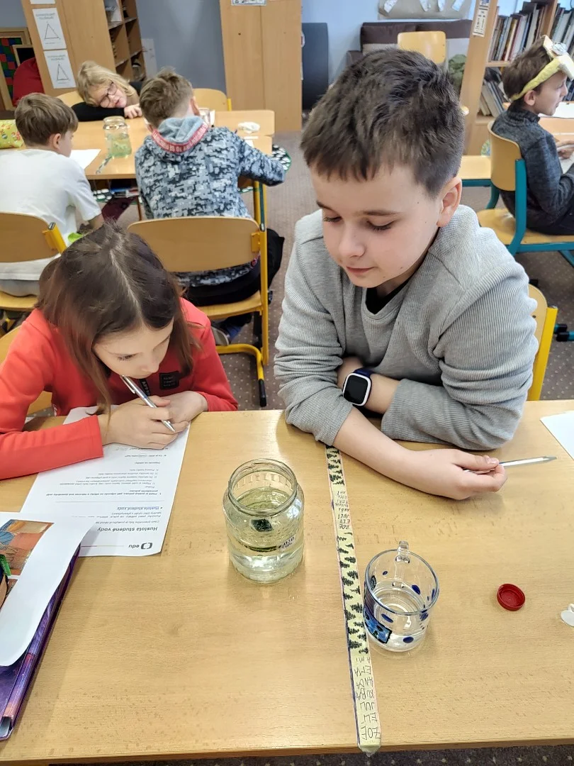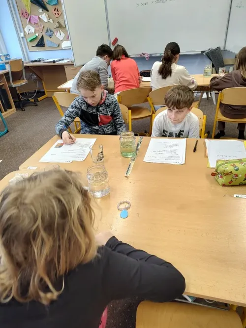 Minulý týden jsme se ve třídě ME zabývali hustotou vody. Pozorovali jsme led, olej a jiné látky, studenou a teplou vodu. Také jsme si ověřili že sůl mění hustotu vody a nadnáší věci, třeba vajíčko. Kromě pokusu jsme se naučili zapsat postup, vytvořit nějakou domněnku, ověřit ji, zapsat výsledek pokusu, odpovědět na otázky a vyhodnotit pokus.