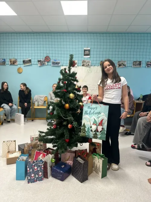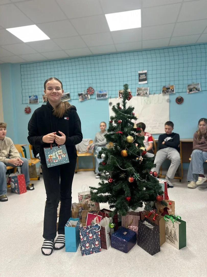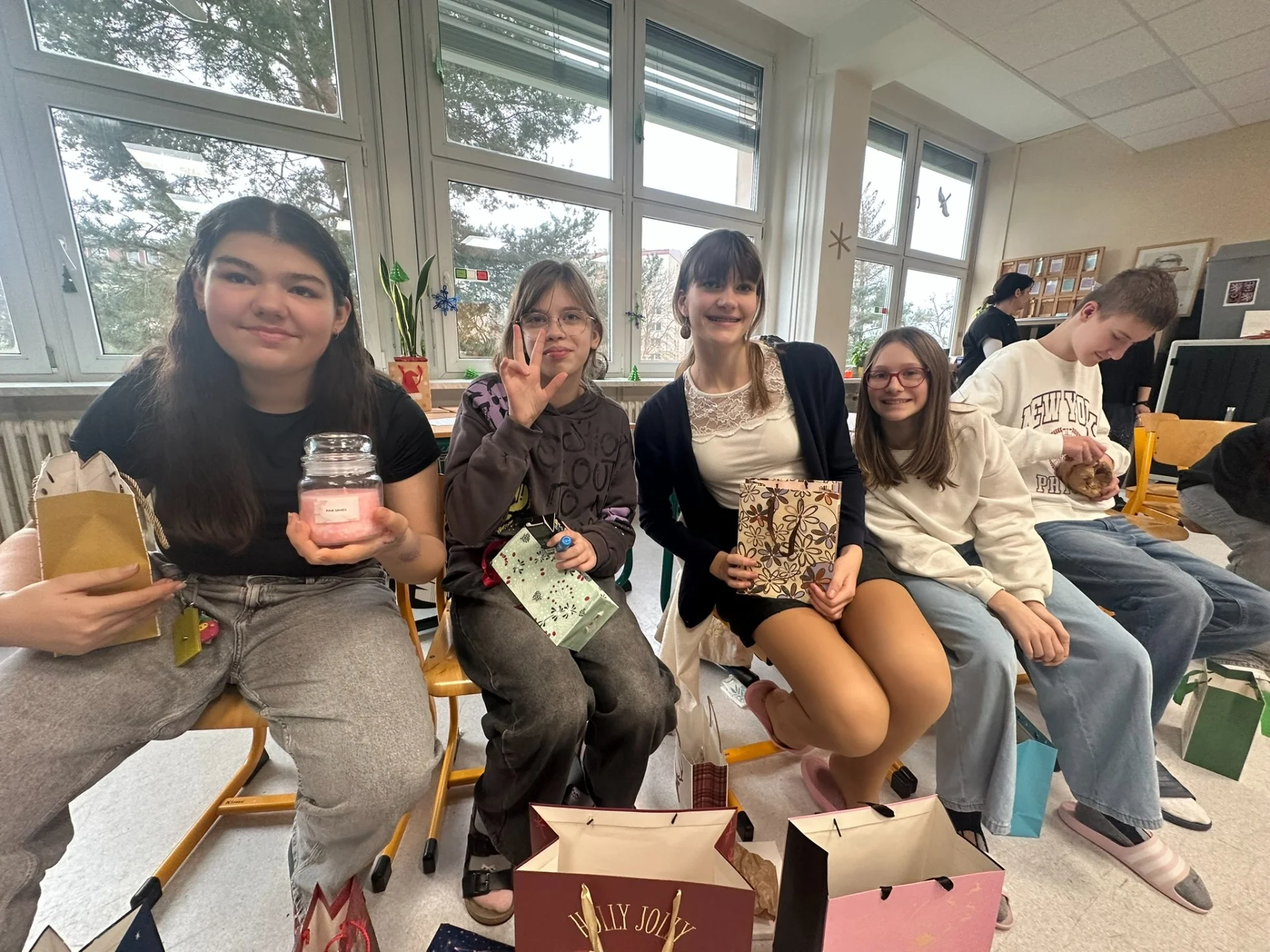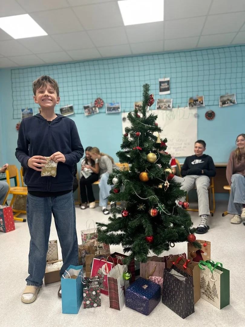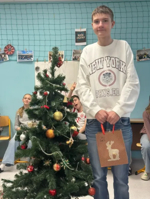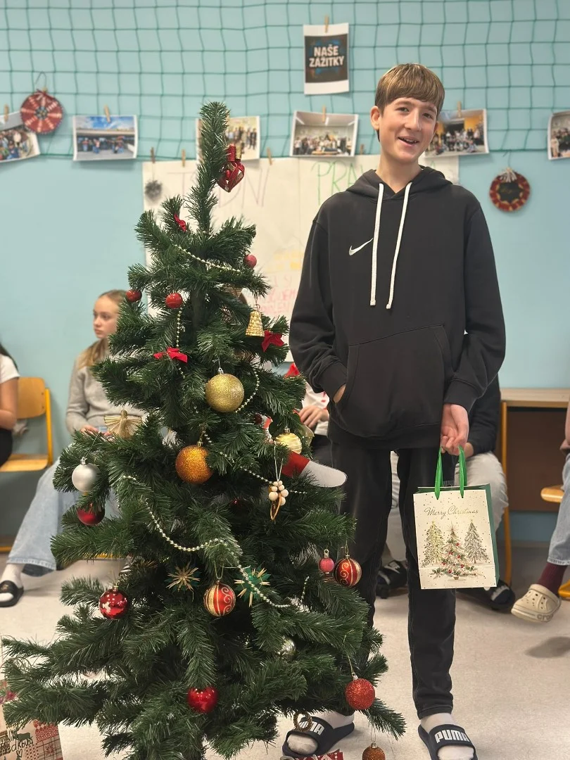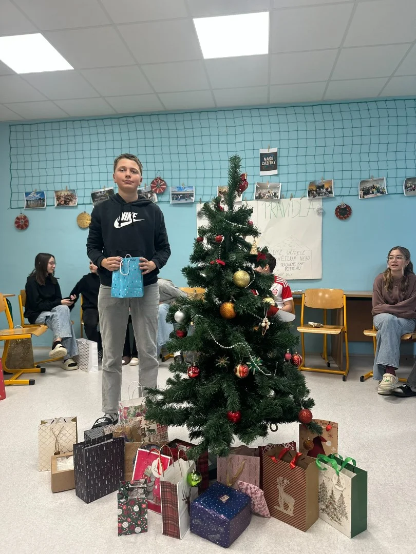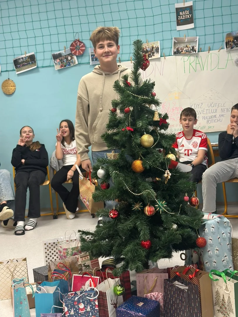 Ve čtvrtek jsme si ve třídě užili pohodovou předvánoční atmosféru. Společně jsme natáčeli novoroční přání, při kterém nechyběl smích ani dobrá nálada. Zahráli jsme si vánoční bingo, povídali si a užívali si společný čas mimo běžnou výuku. Na závěr jsme si ve třídě předávali drobné dárečky, které udělaly radost všem.
