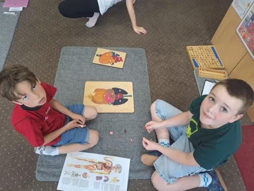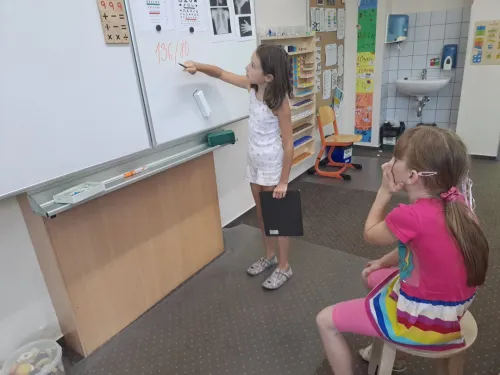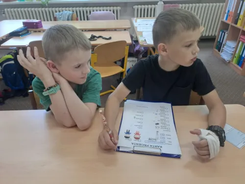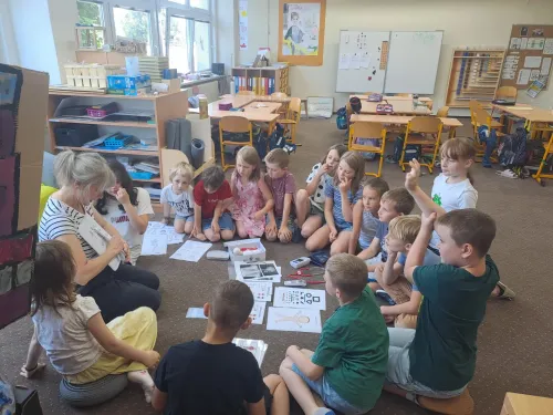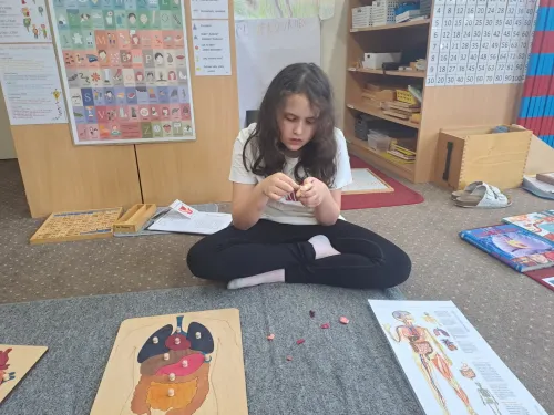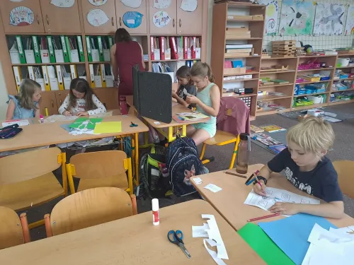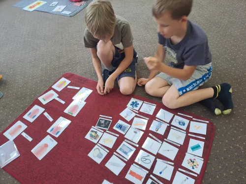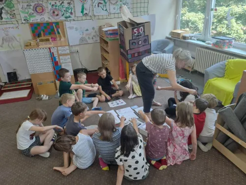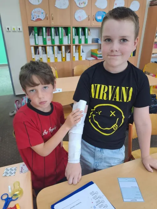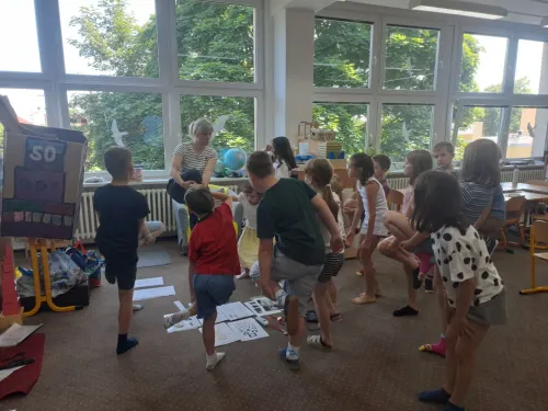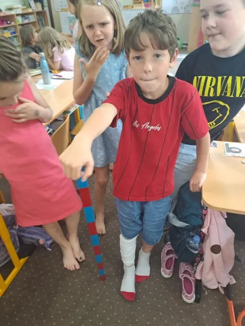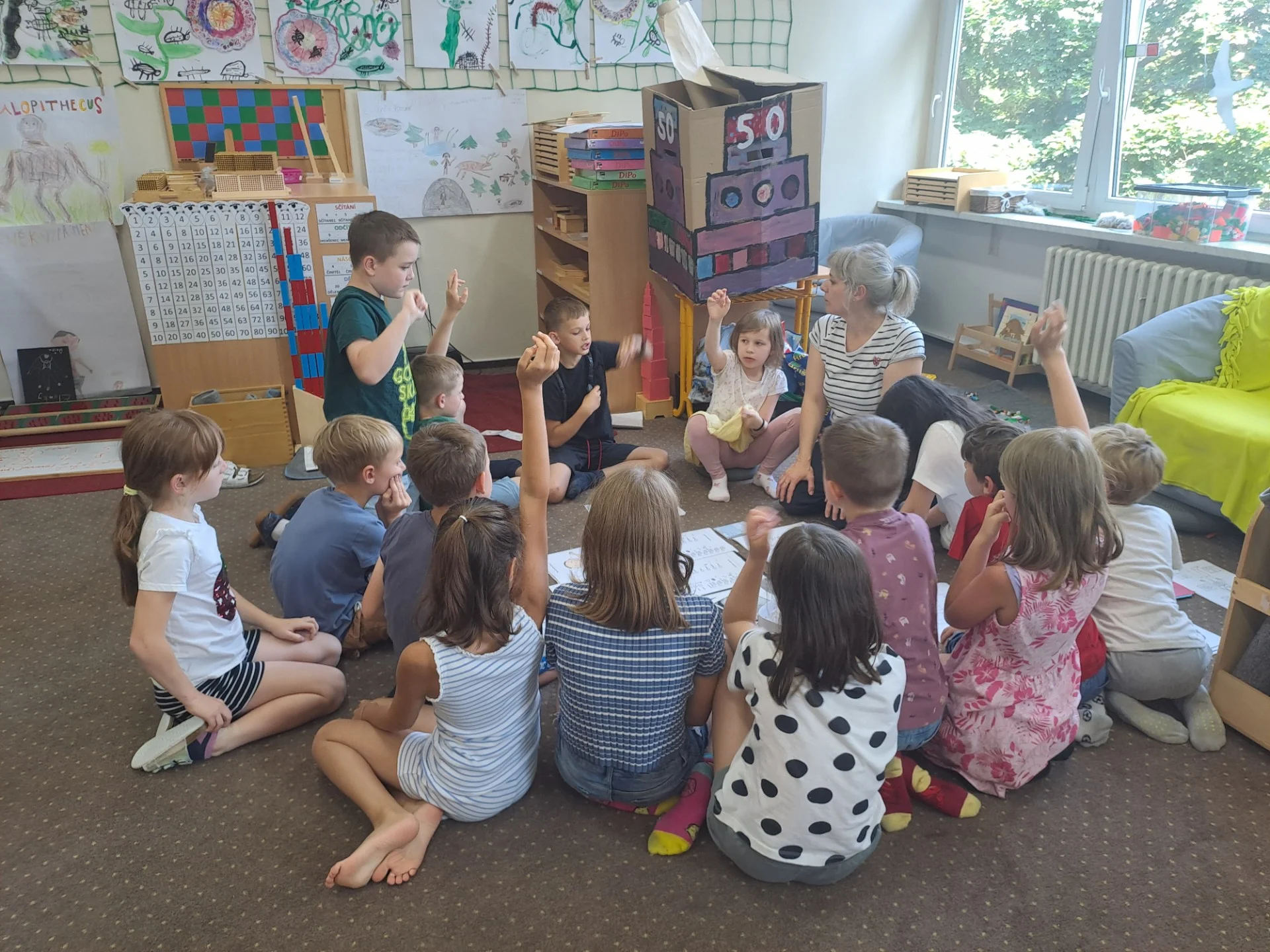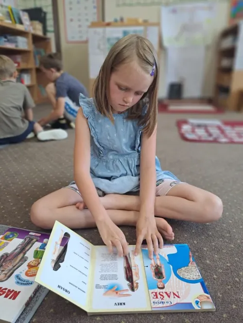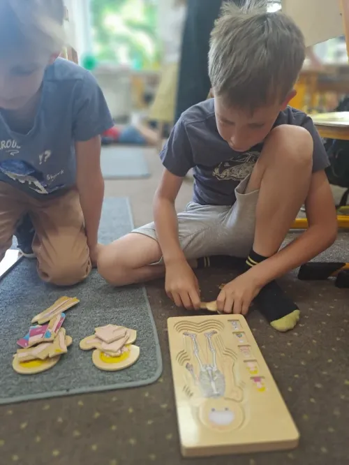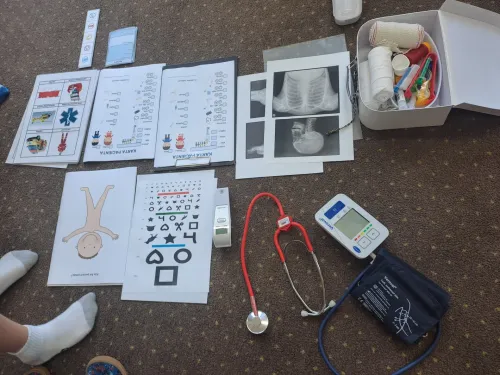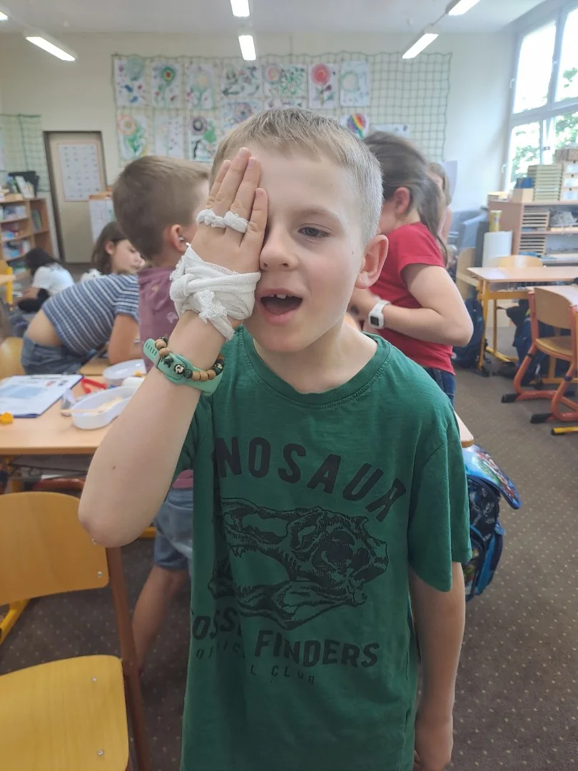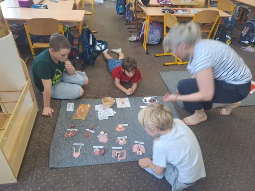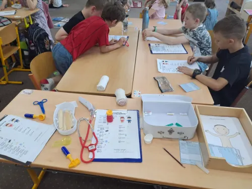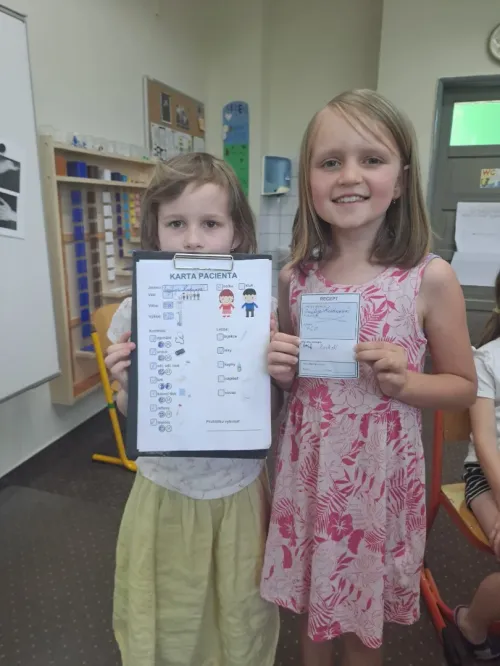 V předposledním týdnu se naše třída proměnila v místo plné malých lékařů a badatelů. Měli jsme projektový týden s tématem Lidské tělo, během kterého se děti poutavou formou seznamovaly se stavbou těla, názvy kostí, svalů i vnitřních orgánů. Pracovaly s pomůckami, vyplňovaly pracovní listy a vše si mohly samy vyzkoušet. Jendou z aktivit byla i vstupní lékařská prohlídka, kdy děti např. měřily krevní tlak tonometrem, poslouchaly srdce a dech fonendoskopem, měřily tělesnou teplotu, kontrolovaly zrak a vše zaznamenávaly do zdravotní karty. Na závěr si každý vytvořil svůj vlastní zdravotnický deník. Týden byl plný nadšení, objevování a praktických zkušeností – všichni se aktivně a s chutí zapojili.