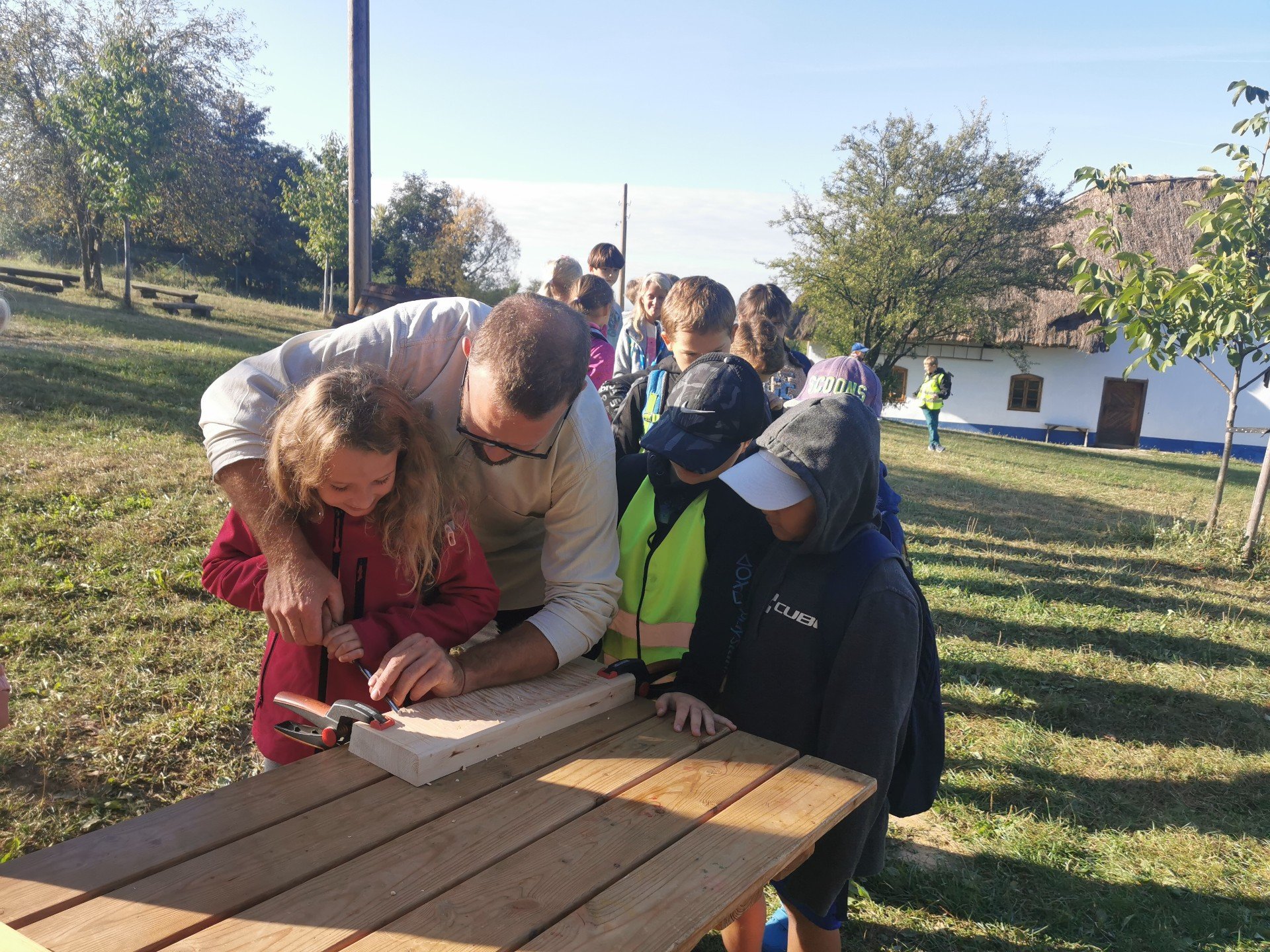 V pátek jsme podnikli výpravu na Rochus, kde byl pro nás připraven výukový program Dřevo je můj chléb. Ten dětem přiblížil význam stromů a dřeva. Nahlédli jsme pod ruky zkušených řemeslníků, pro něž je dřevo hlavním zdrojem obživy, a také ochutnali vlastníma rukama čerstvě vylisovaný jablečný mošt.