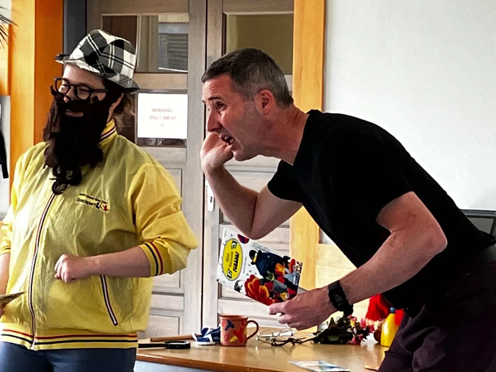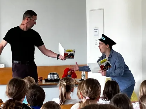 David Vacke a Tereza Hrabalová nám v pondělí 19.5.2025 přinesli do školy další příběhy v podobě scénického čtení.
