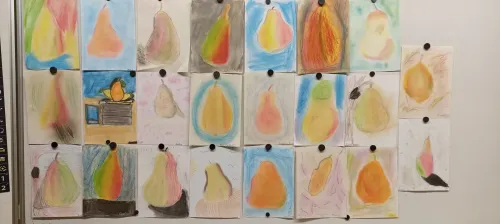 Jednoho dne přinesl František plnou tašku krásných velkých hrušek. Byly sladké jako med a krásně se malovaly.
