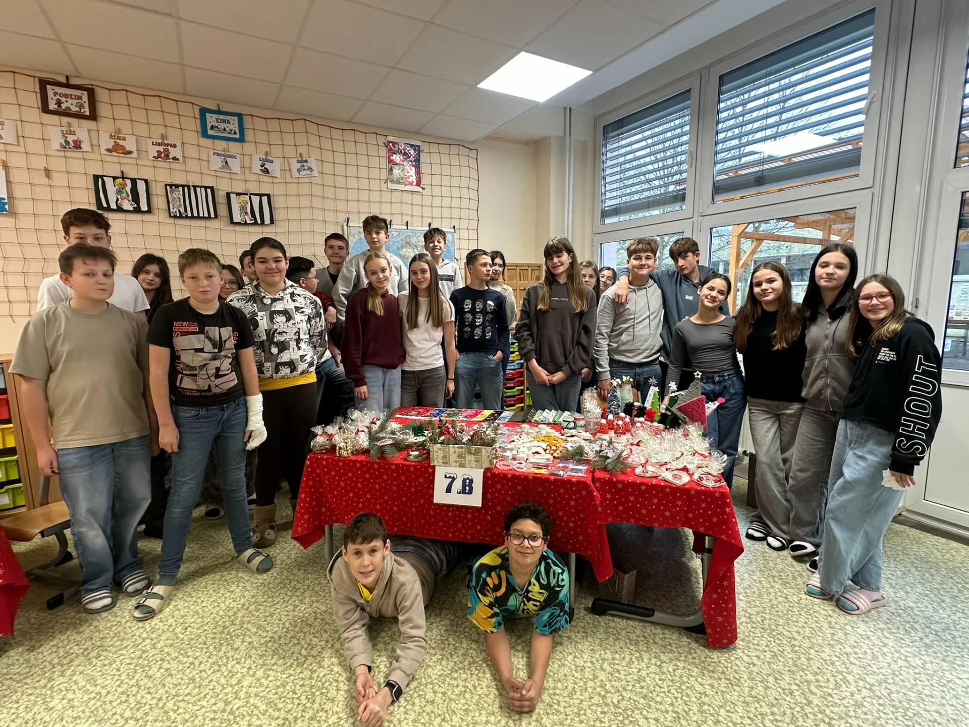 Na konci předposledního týdne školy se u nás opět konal tradiční vánoční jarmark. Do této milé akce se zapojila i naše třída se svým vlastním stánkem. U prodeje se postupně vystřídali téměř všichni žáci a každý přiložil ruku k dílu. Atmosféra byla velmi příjemná