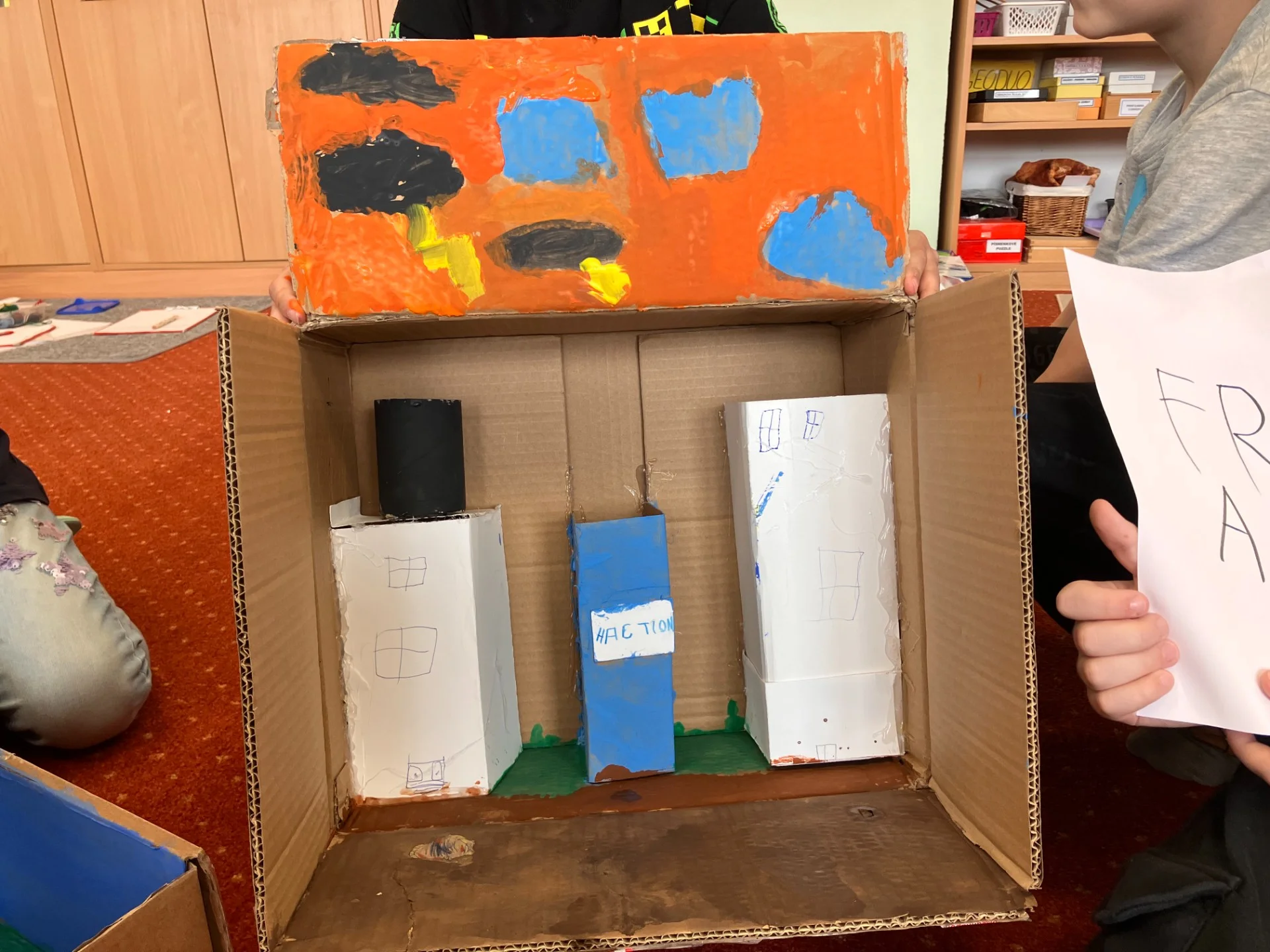 Z krabic, kartonů, lepidla, barev a dalších materiálů děti tvořily dioráma města. Mohly ztvárnit Uherské Hradiště tak, jak ho znají, nebo jakékoliv jiné město tak, jak si ho představují. Pracovaly ve smíšených skupinách a hotové dioráma společně představily ostatním dětem. V rámci prezentace také hodnotily, jak se jim spolupracovalo ve skupině a co by případně příště udělaly jinak. Každý se také mohl vyjádřit k prezentaci ostatních skupin.