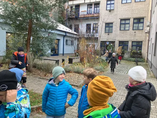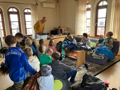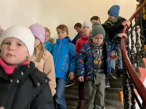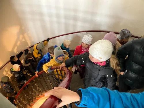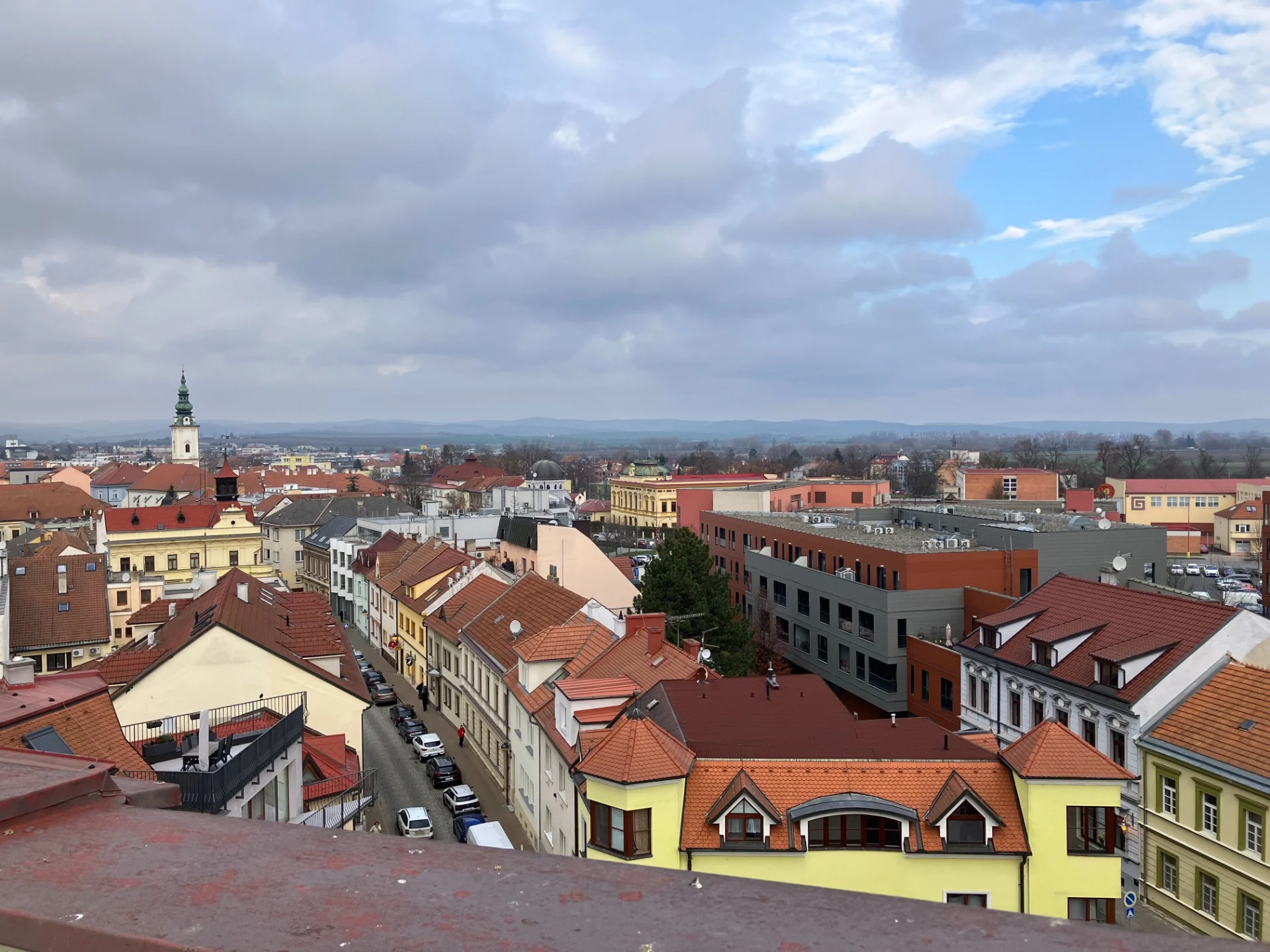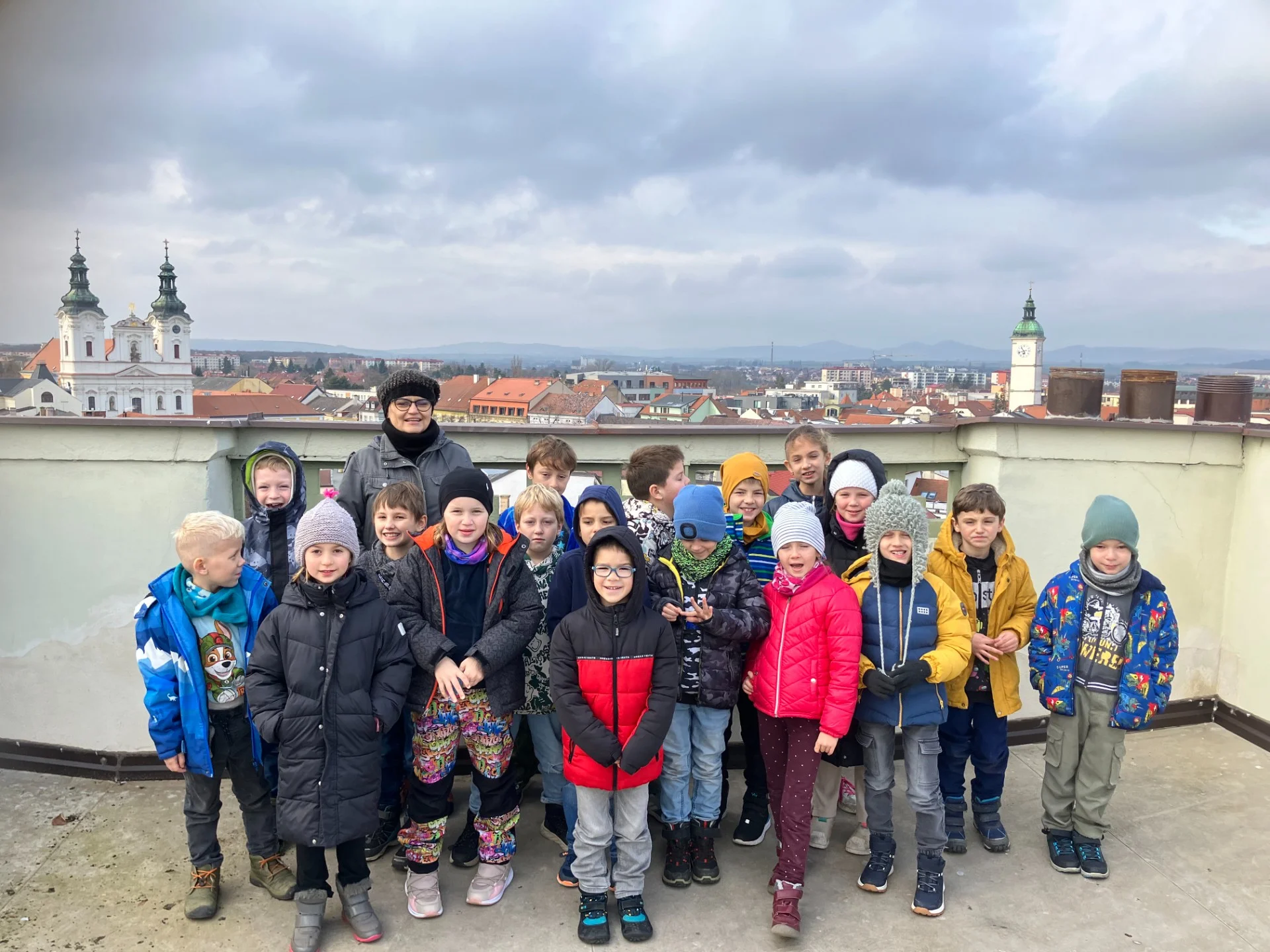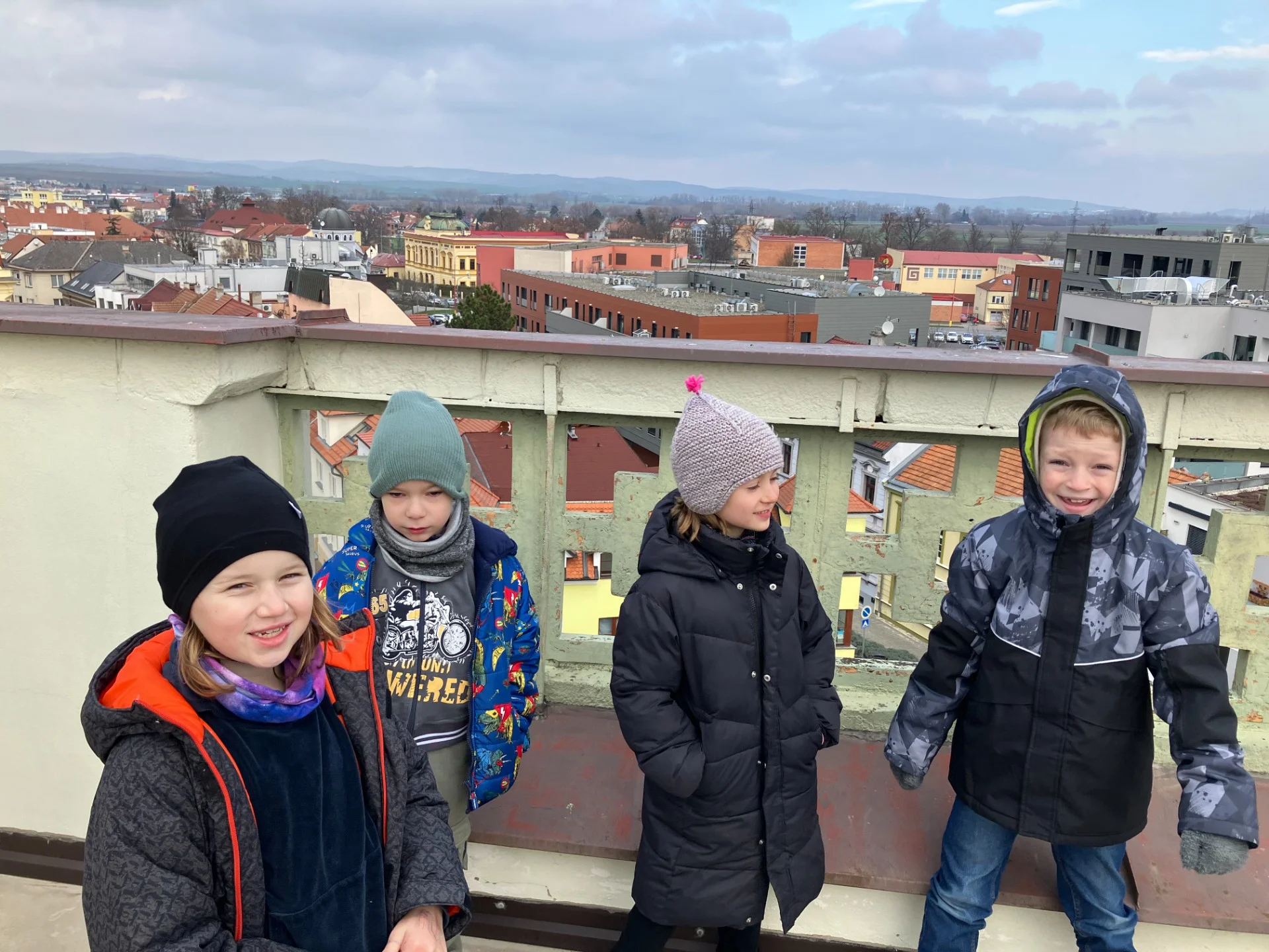 Uherské Hradiště je krásné nejen z náměstí nebo ulice, ale i z věže. Měli jsme jedinečnou možnost vystoupat na věž v domě čp. 172 a prohlédnout si město z ptačí perspektivy. Cestou zpět do školy jsme ještě obdivovali sochu Kouzelníka paní Idy Vaculkové, slavné hradišťské sochařky, a zcela neplánovaně jsme potom vystoupali po dalších točitých schodech do kavárny Portál v domě čp. 35