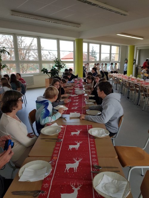 Předvánoční čas jsme strávili jako třída společně. Proběhly turnaje v různých deskových hrách, pouštěli jsme si koledy, podívali se na film A Christmas Carol od Charlese Dickense, šli se podívat na vánoční trhy na náměstí v Uherském Hradišti, rozdali si dárky a před odchodem na vánoční prázdniny se rozloučili u slavnostního oběda, který si připravili žáci 7. třídy.