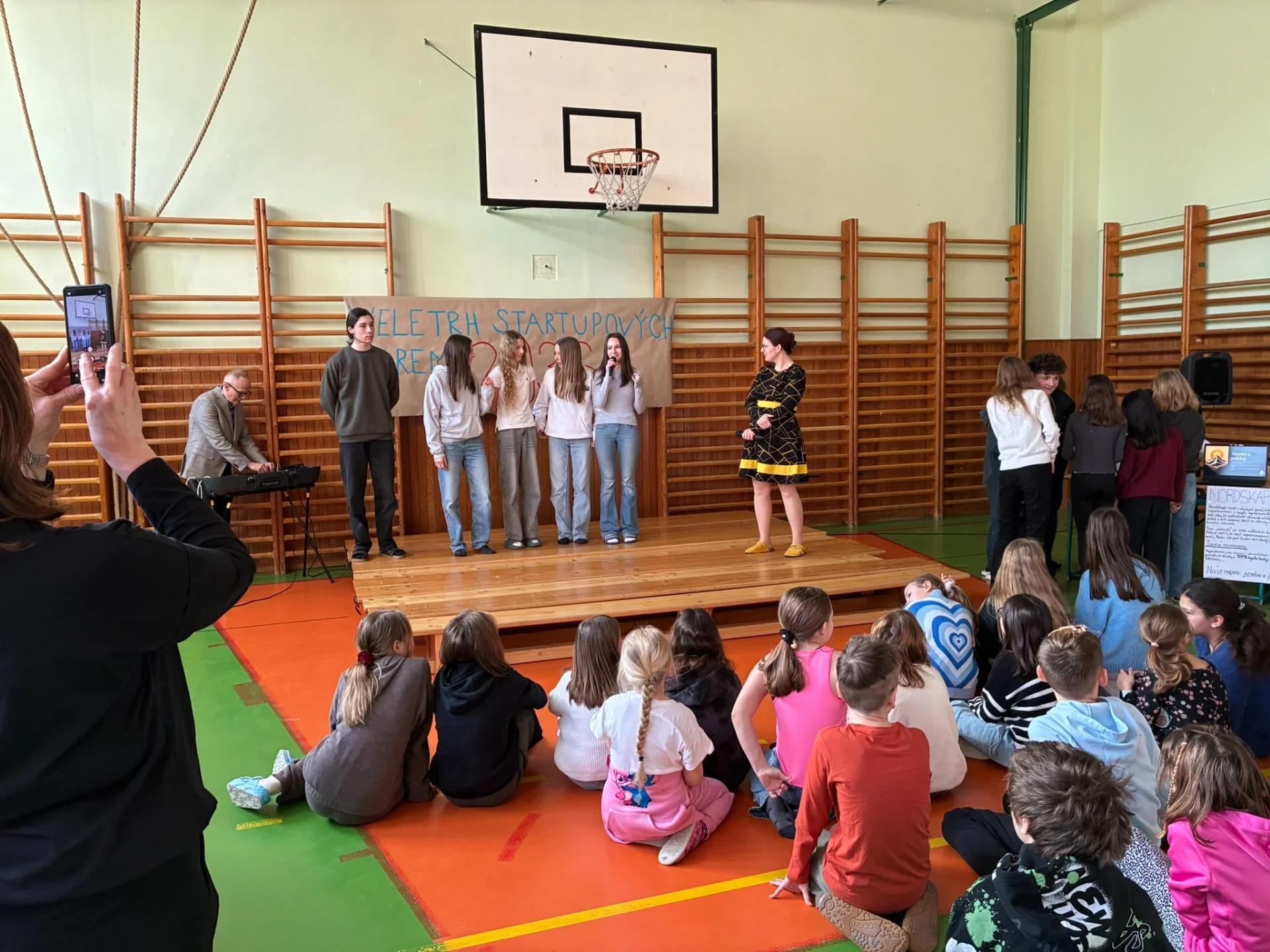 V průběhu prvního pololetí jsme v pracovkách dávali ve skupinách dohromady imaginární startupové firmy. To celé vyvrcholilo velkým veletrhem, který proběhl v tělocvičně. Každý projekt zde měl svůj stánek, kde prezentoval svoji koncepci mladším spolužákům a navíc ještě každý dostal možnost představit svou firmu na pódiu. Každý jsme si ukotvily různé základy do budoucího života! Někteří si založili firmu na projektování a stavbu skateparků, jiní našli lék na všechno, někteří zas prodávali nosnice nesoucí zlatá, stříbrná a měděná vejce, jiná skupinka zas vymyslela skříň, která vám pomocí AI a robotické ruky vybere a připraví originální outfit.