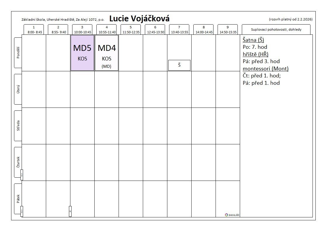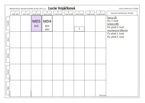 Práce s dětmi, a lidmi obecně, mě vždycky přitahovala, a proto jsem se rozhodla, poté co mé vlastní děti odrostly, absolvovat kurz Asistent pedagoga na střední pedagogické škole v Kroměříži. Jsem ráda, že nyní mohu pracovat na základní škole. Práce asistenta mě baví, vždycky se těším na setkání s dětmi, na jejich postřehy, reakce a úsměvy. Ve volném čase si užívám společné chvíle strávené s rodinou, ráda čtu, zajímá mě historie, zdokonaluji se ve francouzštině a chodím do divadla a na koncerty. Za mé motto se dá považovat citát od Senecy: „Největší zlo je odejít z počtu živých dřív, než jsi zemřel.“