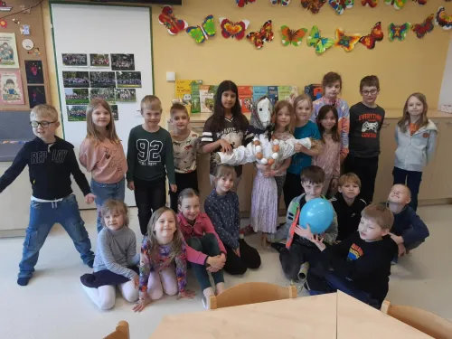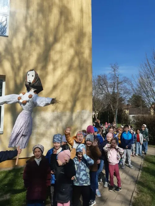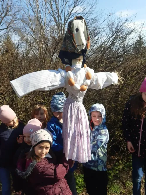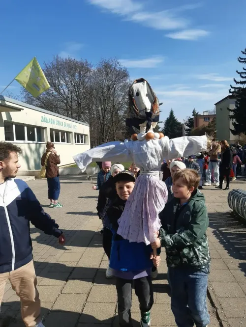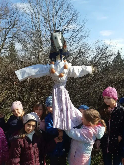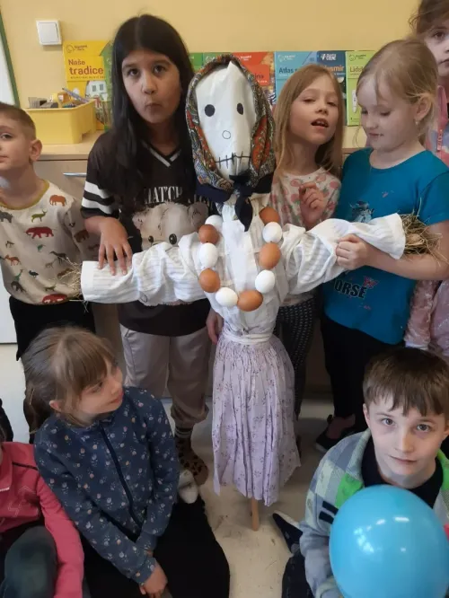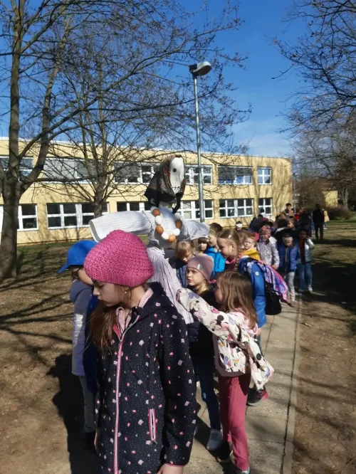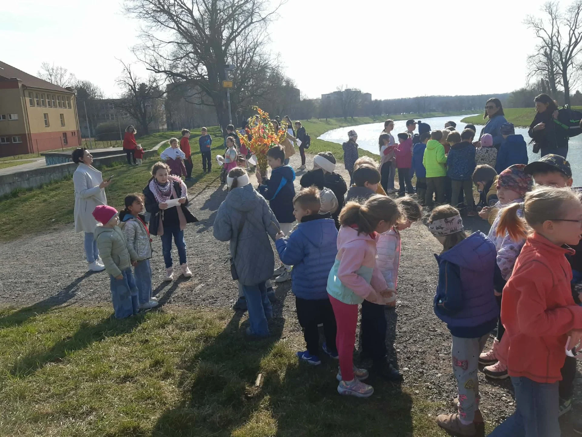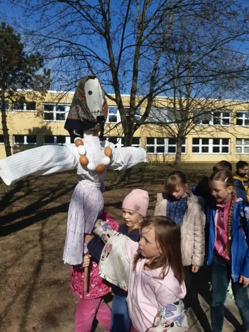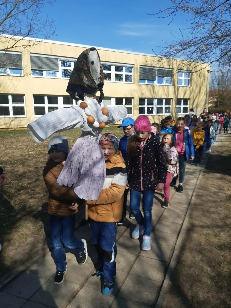 Na první jarní den jsme vynášeli Morenu do řeky Moravy. Za průvodu lidových básní a písní jsme společně přivítali jaro.