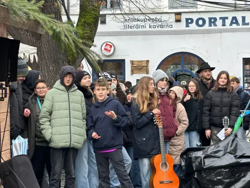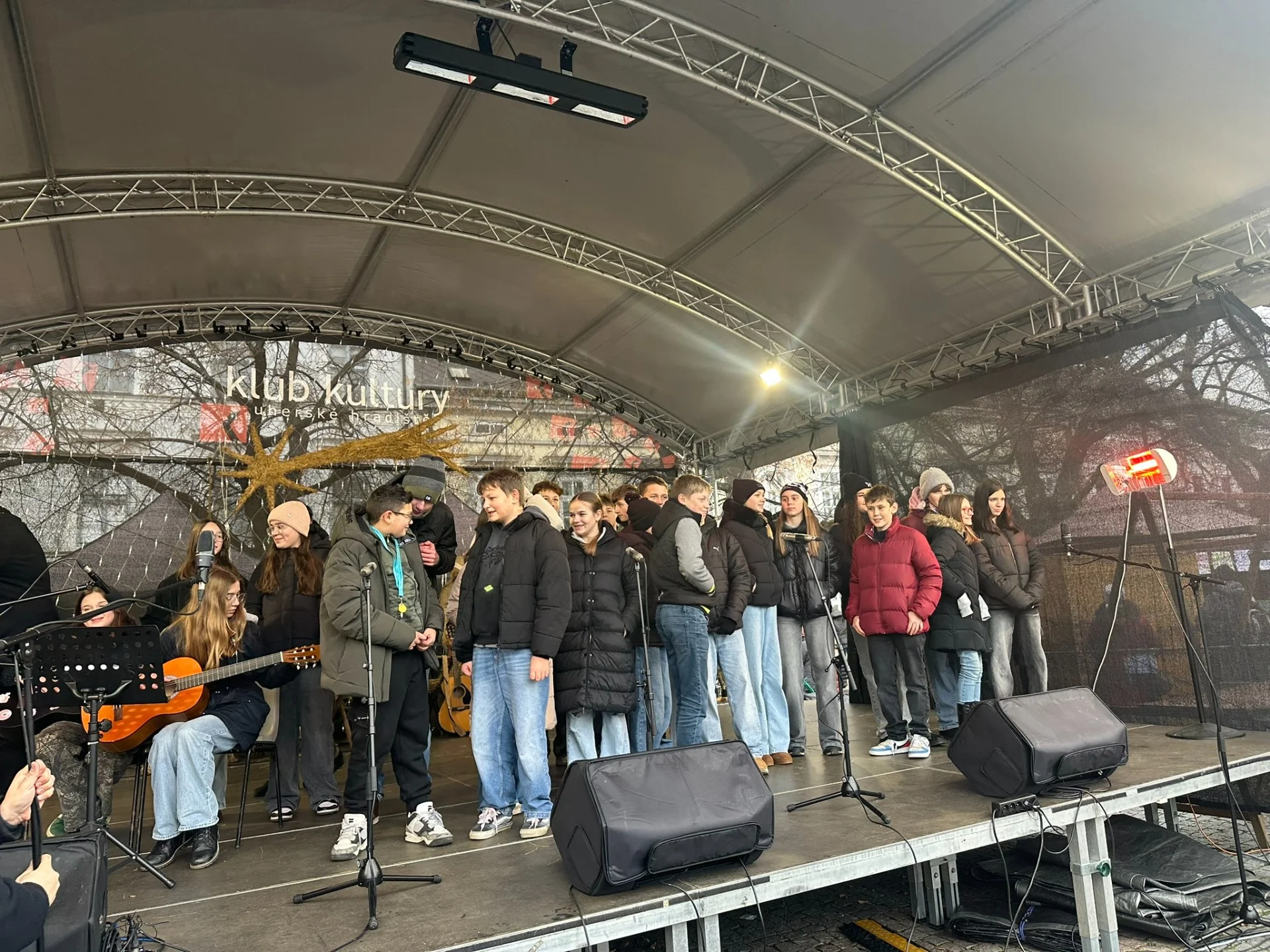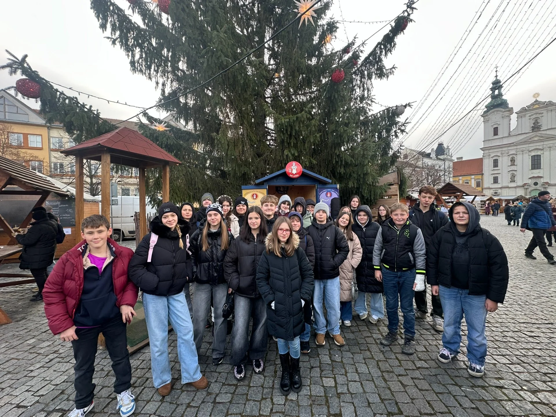 Ještě před samotným vystoupením jsme navštívili vánoční trhy na Masarykově náměstí a nasáli pravou adventní atmosféru. Poté jsme zazpívali dvě písničky – Modlitbu a Tisíc andělů. Při zpěvu nás na kytaru doprovázeli naši učitelé společně s Anežkou a Áďou. Na vystoupení se přišli podívat i rodiče, kteří nás podpořili svou účastí.